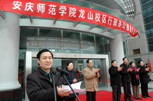 党委副书记、院长汪青松同志在仪式上发表了重要讲话。他首先代表学校党政班子向全校师生表示节日的美好祝福,并向行政办公楼的承建单位和新校区建设办公室同志表示衷心感谢。他指出,beat365隆重举行行政办公楼启用仪式,各职能部门整体进驻龙山校区办公,标志着新校区建设工作进入了全新的阶段,也标志着beat365各项事业进入了新的发展机遇期,这是beat365百年办学历史中又一个具有里程碑意义的大喜事,是一个永远值得纪念的日子。他希望全校同志必须进一步解放思想,更新观念,抢抓机遇,不断前进;必须居安思危,增强忧患意识、竞争意识、创新意识和责任意识;必须按照第四次党代会确立的发展目标,同心同德,勤俭办学、勤奋工作,不断开创学校事业新局面。