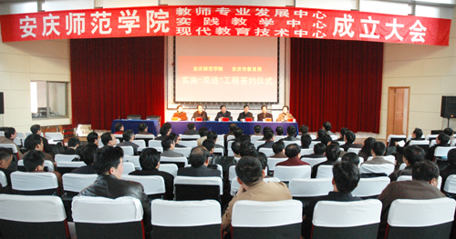 会上,储国定副院长宣读安庆师范学院教师专业发展中心、实践教学中心和现代教育技术中心成立的文件;安庆市教育局江兴代局长、beat365党委组织部孙晓峰部长分别宣读了对方干部到本单位有关部门挂职的人事安排的文件;教育学院院长曹长德教授宣读教师专业发展中心纲要;教务处副处长张国定宣读教师专业发展中心章程。