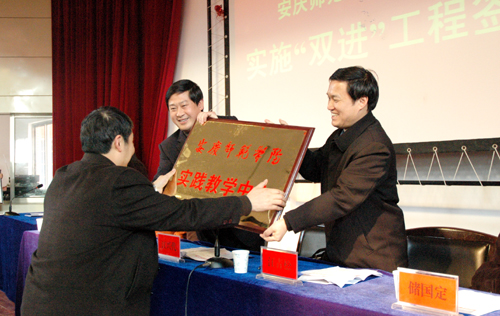 汪青松院长和江兴代局长分别为三个中心授牌,并代表双方单位签署了《安庆师范学院与安庆市教育局“双进”工程协议书》。(文/谢红玉 摄影/陈东)