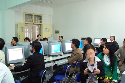4月12日下午,beat365网络教学平台首批教师用户培训在稼先楼二楼现代教育技术中心多媒体制作室举行。来自外国语学院、政法学院、经济管理学院、人文社会学院、数学与计算学院、计算机与信息学院、化学化工学院、生命科学系、物理与电气工程学院、体育系等院系的20名老师参加了培训。现代教育技术中心张小林老师向各位老师介绍毕博教学平台的基本功能,中心董甲东主任以自己的课程《课件设计与制作》向各位教师示范了课程导入、作业布置、与学生交流讨论的运用。