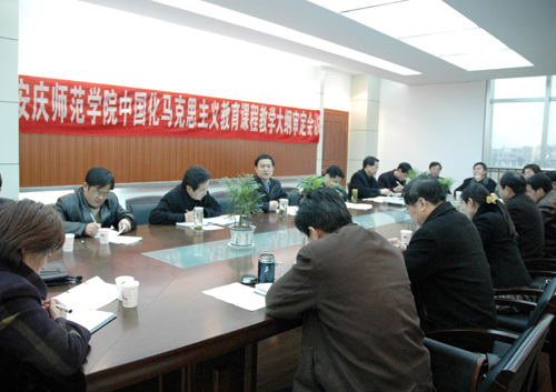 3月10日下午,beat365中国化马克思主义教育课程教学大纲审定会议在龙山校区召开。院长、校中国化马克思主义教育课程教学指导组组长汪青松教授出席了会议,校中国化马克思主义教学指导组全体成员、中国化马克思主义教育各项目主持人参加了会议。