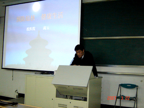 在3月24日“世界防治结核病日”到来前夕,学校又于3月22日晚举行了“结核病防治知识讲座”,讲座受到了广大学生的热烈欢迎。(李先惠)