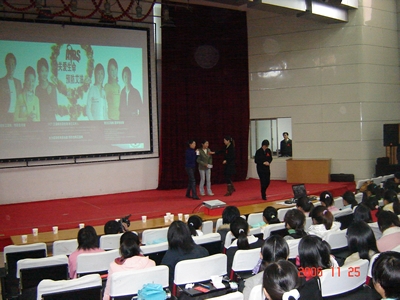 2006年11月25日上午,来自各院系的300多名同学在12月1日“世界艾滋病日”到来之际齐聚在龙山校区学术报告厅与疾病控制专家对话,共同探讨校园艾滋病防治。