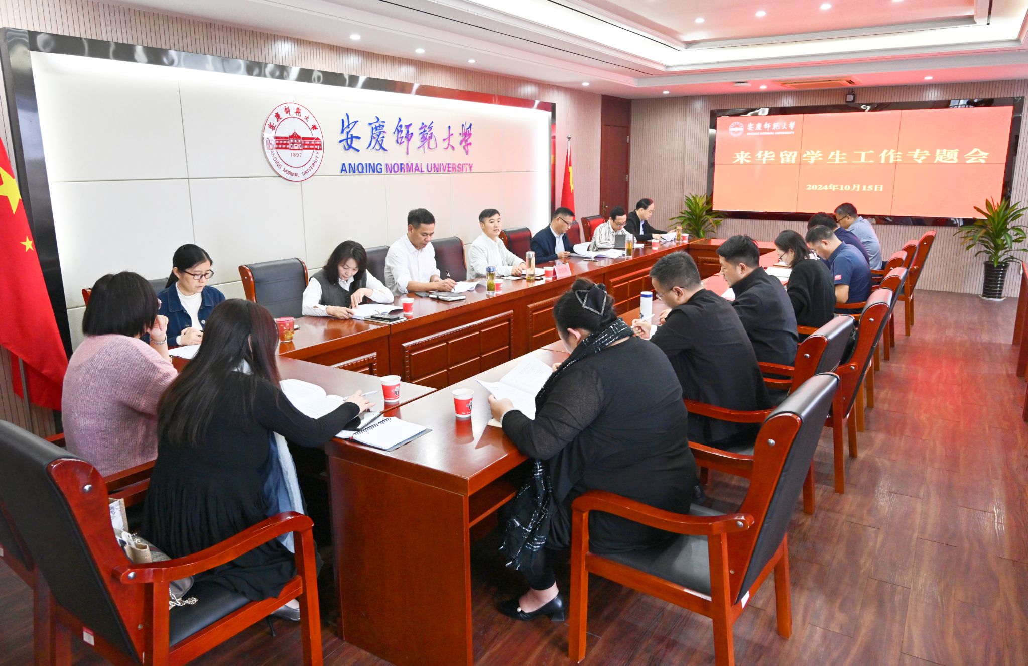 10月15日,学校召开来华留学生工作专题会议。校党委常委、副校长申传胜出席会议,相关学院、教务处、研究生院、校团委、国际交流与合作处负责人参加会议。
