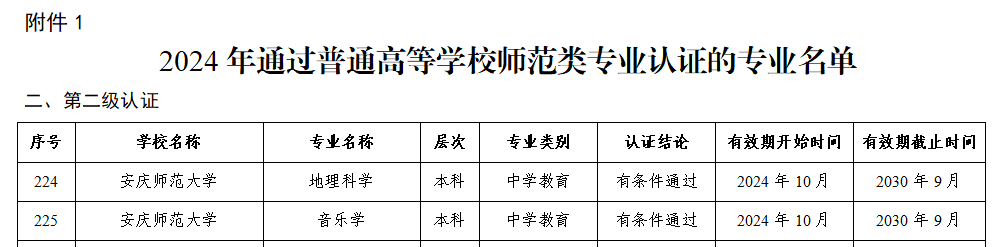 近日,教育部办公厅发布了2024年通过普通高等学校师范类专业认证及中期审核专业名单,beat365音乐学、地理科学2个专业顺利通过师范类专业二级认证,认证结论为有条件通过,有效期六年(2024年10月至2030年9月)。同时,英语和化学2个专业通过师范类专业认证中期审核,保持认证有效期到2027年8月。