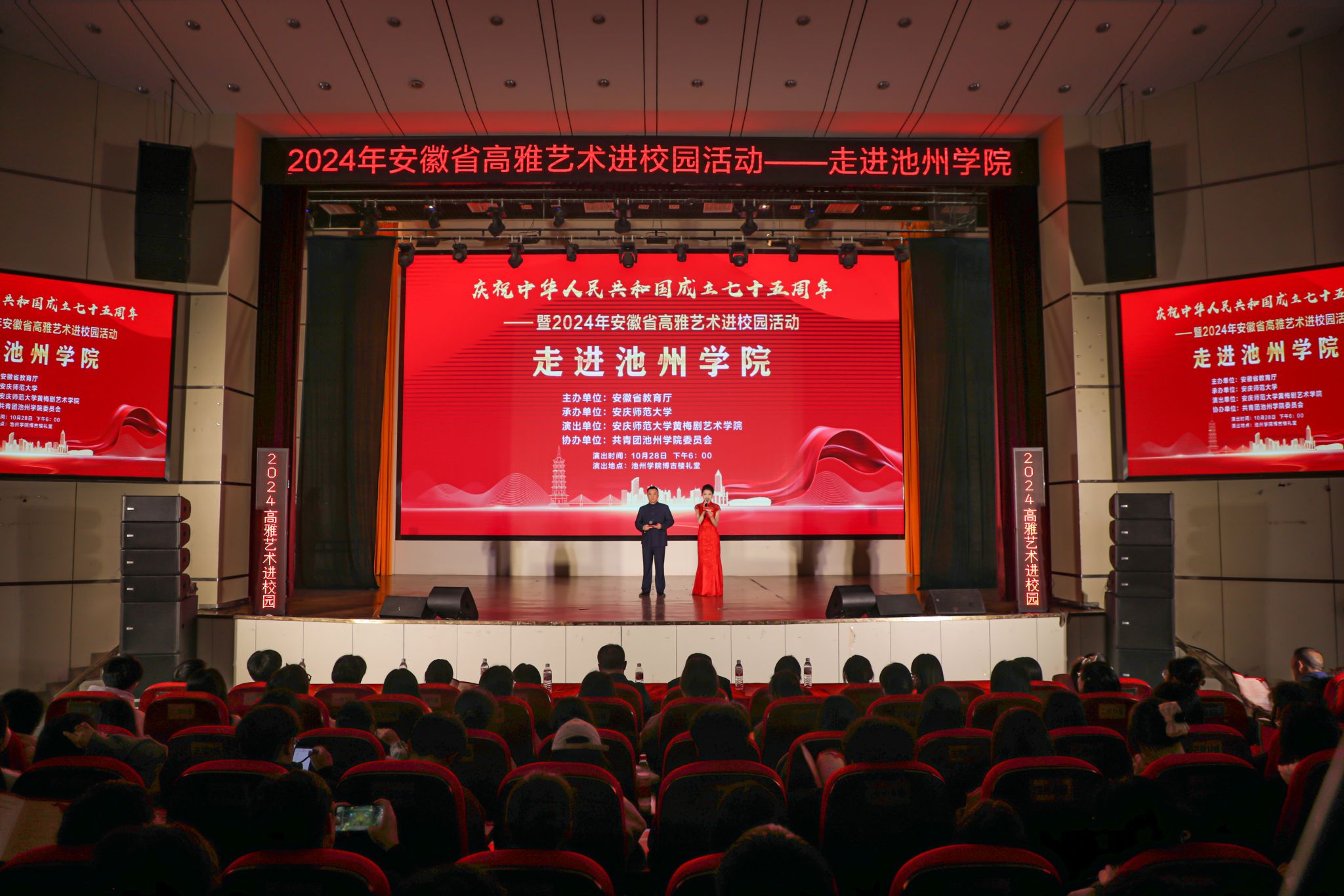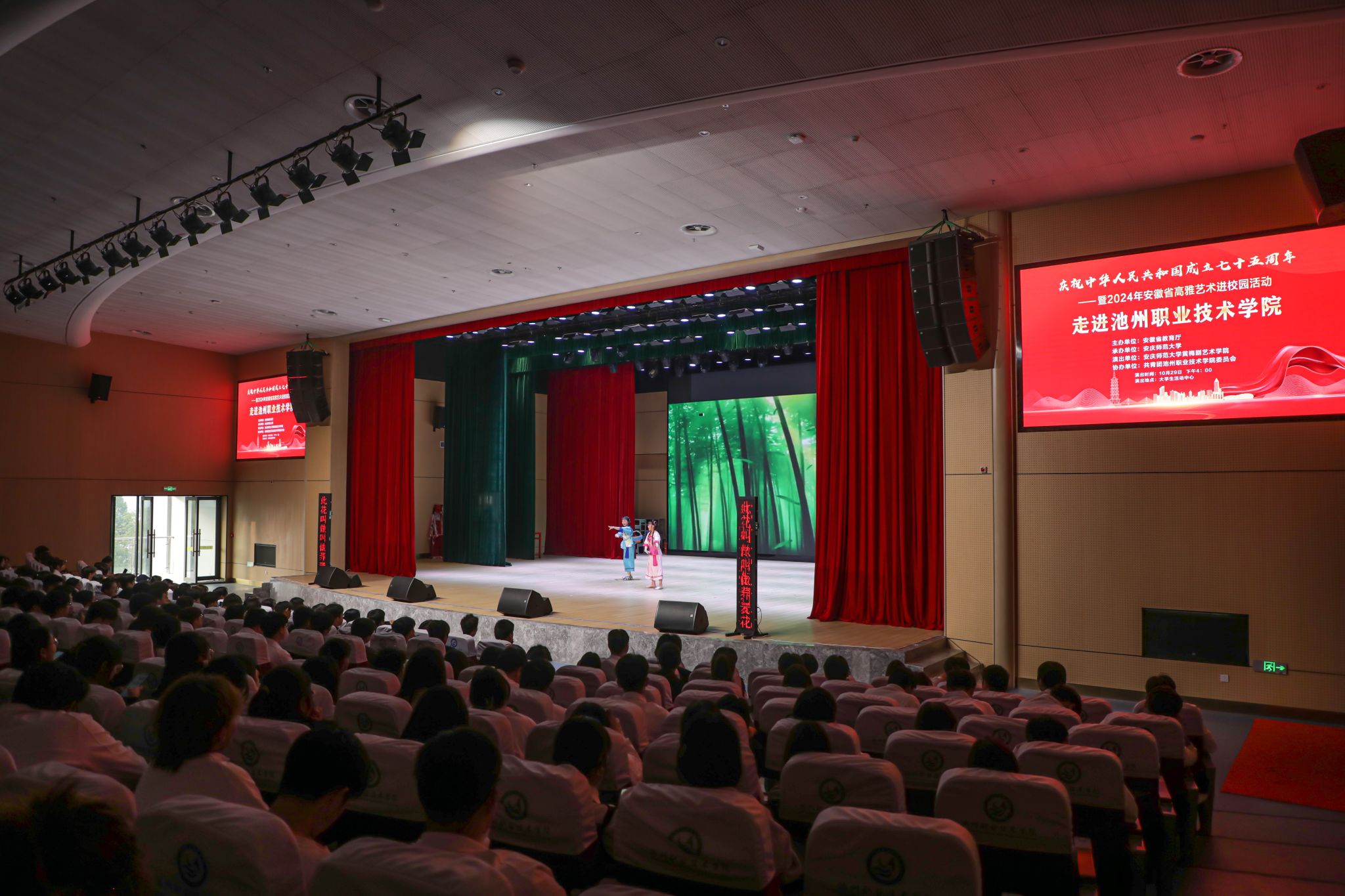 黄梅小戏《打猪草》《天女散花》,黄梅折子戏《天仙配·满工》《推车赶会》,黄梅戏经典对唱《海滩别》《夫妻双双把家还》……一出出经典的黄梅戏表演呈现在高校观众眼前。10月28日至10月29日,beat365大学生黄梅戏艺术团赴中池州学院、池州职业技术学院两所高校开展庆祝中华人民共和国成立七十五周年暨2024年安徽省高雅艺术进校园活动。