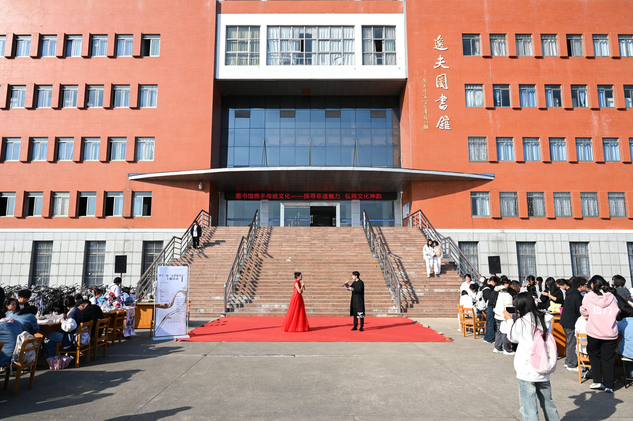 11月6日,逸夫图书馆广场人头攒动、热闹非凡,近千名同学聚在一起共同欣赏一场“非遗”展演。这是学校第十三届读者服务月系列活动之“寻传统文化 扬非遗神韵”展演活动现场。