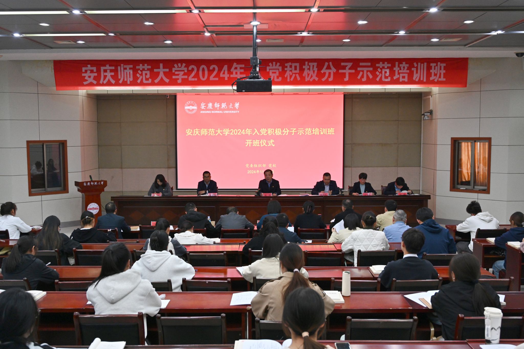 为认真落实省委组织部、省委教育工委有关要求,进一步加强和规范大学生入党积极分子集中培训工作,提高党员发展质量,形成示范效应,经校党委研究并报省委教育工委、省委组织部同意,学校党校举办2024年入党积极分子示范培训班,本期参训学员50名,由学校党校各分党校择优推荐。培训将围绕深入学习贯彻习近平新时代中国特色社会主义思想和党的创新理论、党章党纪党规、党的历史、安庆市情及经济发展等方面展开,通过理论授课、视频教学、外出实践、交流研讨等环节,集中安排相关教学活动,引导学员弘扬爱国主义精神、坚定理想信念、提升党性修养。(撰稿:汪文秋        摄影:范龙超       编辑:江伟      审核:计裕人 陈秀)
