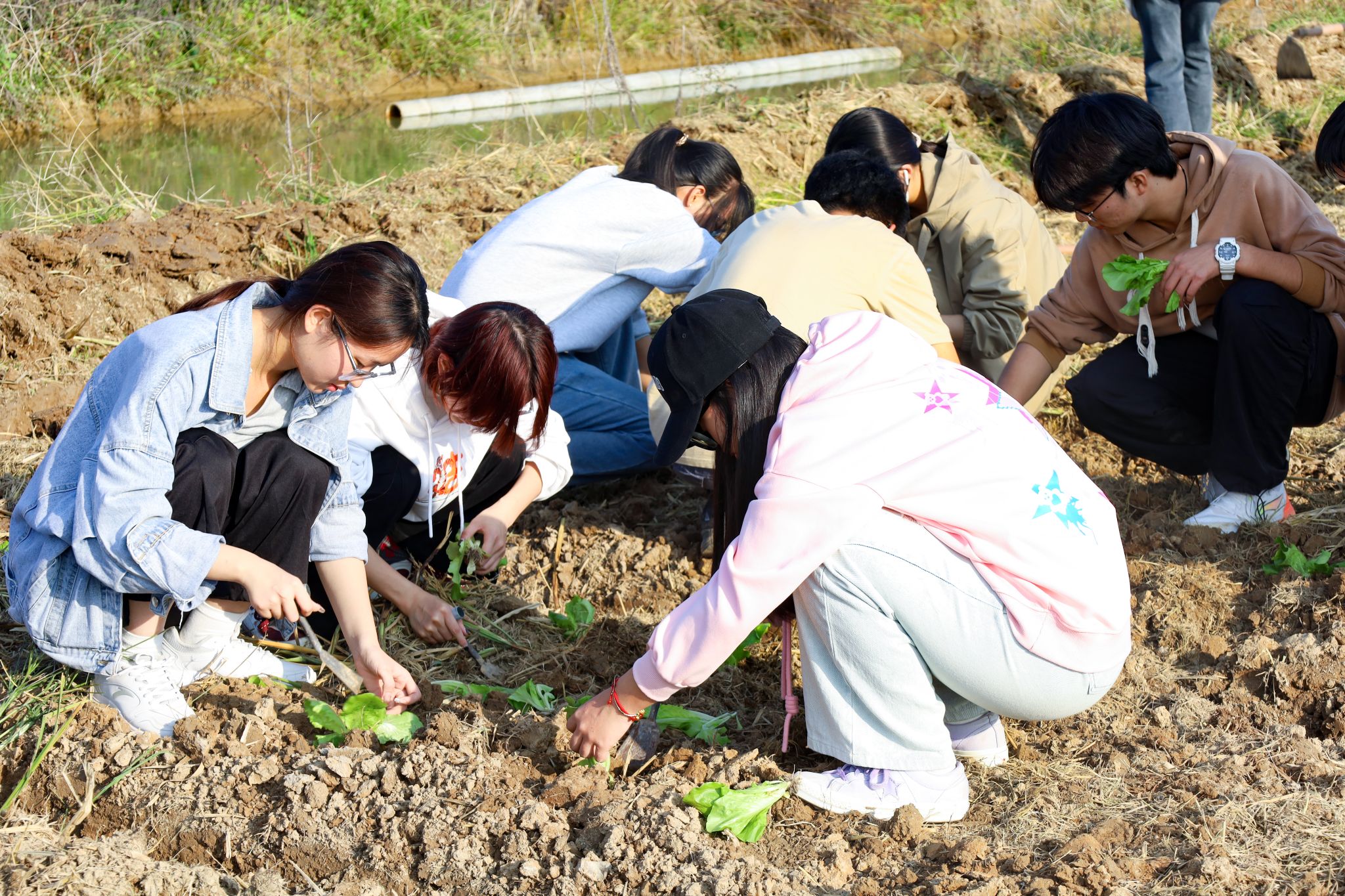 将嫩绿的菜苗放入挖好的小坑中,用小铲子将土壤覆盖在菜苗的根部,拿起水瓢慢慢浇水……田间学生们栽下的菜苗一片翠绿,与蔚蓝的天空中悠然铺开的鱼鳞状白云遥相呼应。“希望下次再来时,你们已经茁壮成长了!”数学类专业2024(2)班的崔爽对着自己亲手种下的小菜苗说,“与大自然共同孕育生命的奇妙感觉,让我内心充满了前所未有的喜悦。”崔爽坦言,比起耕种的辛苦,这次劳作更让她体会到的是栽种过程中满满的成就感。