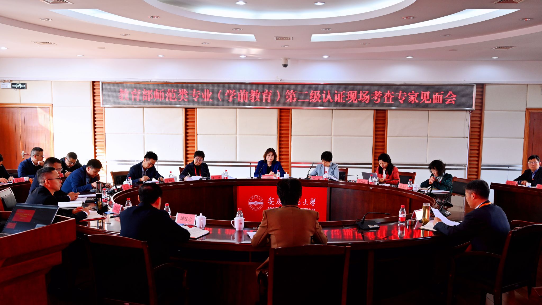 11月11日上午,王淑梅主持召开专家组见面会。专家组全体成员,安徽省教育评估中心负责人,学校党政领导彭凤莲、刘友忠、徐晓宁、申传胜、计裕人出席会议。安徽省教育评估中心负责人宣读了认证文件并介绍了专家组成员及与会人员,并作相关工作要求说明。