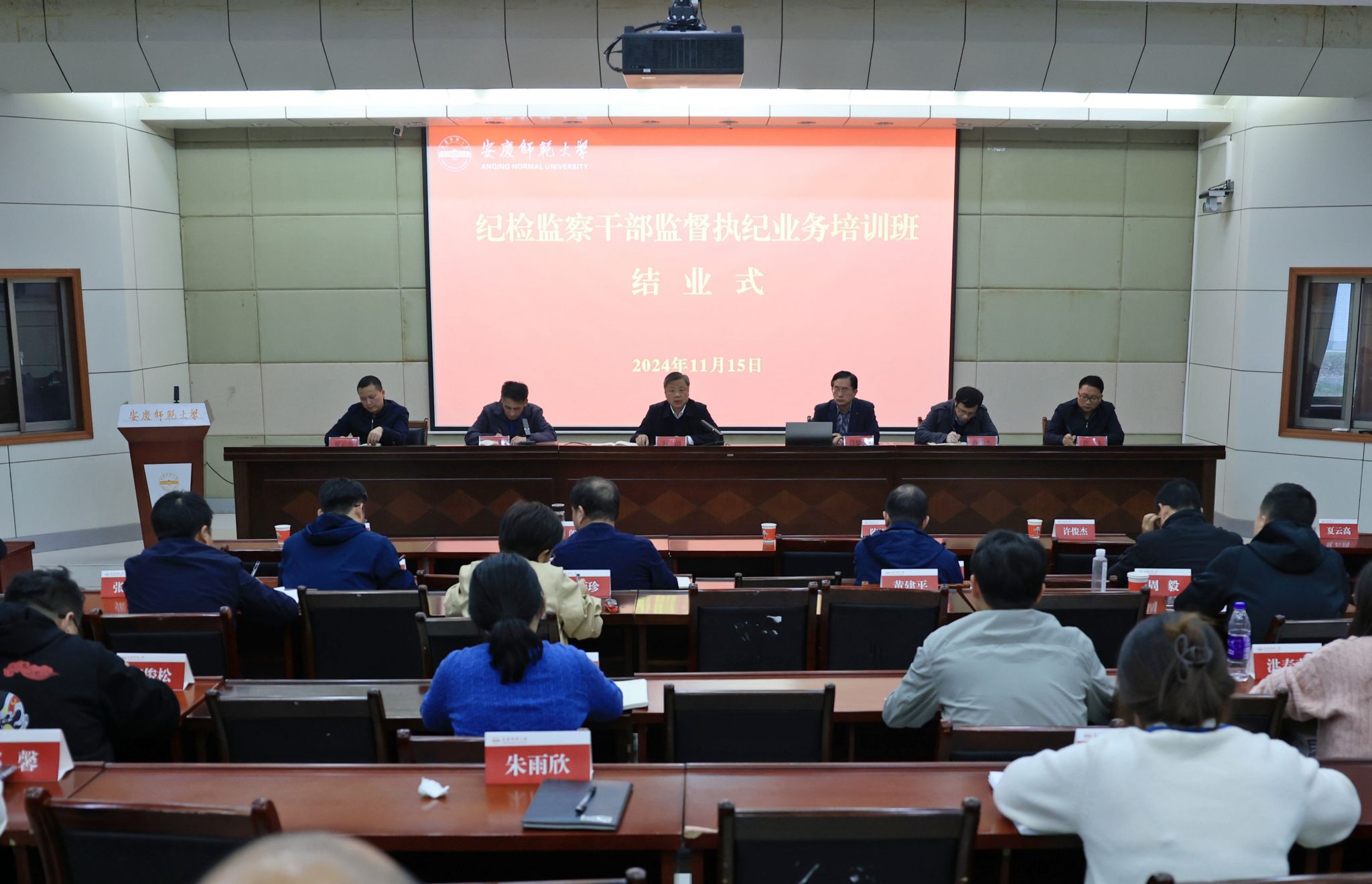 11月15日,学校举行纪检监察干部监督执纪业务培训班结业式。校党委常委、纪委书记、监察专员秦朗出席并作总结讲话,校纪委办公室主要负责人主持结业式。