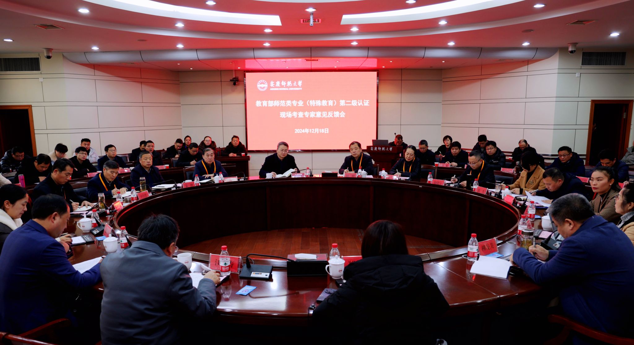 反馈会上,郑燕林代表专家组作了总体情况反馈。专家组认为,beat365亚洲体育官方网站特殊教育专业教师有大爱,教育情怀深厚,热爱特殊教育事业,教学投入大,专业教师对师范生有着潜移默化的正向引导;特殊教育专业有大格局,与多所特殊教育学校共建特殊教育发展联盟,构建了协同育人新生态;特殊教育专业坚守育人初心,已经成为安徽省特殊教育人才培养的重要基地;该专业师范生热爱专业、热爱学院、热爱学校,绝大多数毕业生长期致力于特殊教育事业,多数已成为领域的骨干力量。专家组在肯定特殊教育专业自评自建成效的同时,指出了在反向设计、正向施工、底线评价等方面存在的问题,并提出了进一步改进意见和建议。