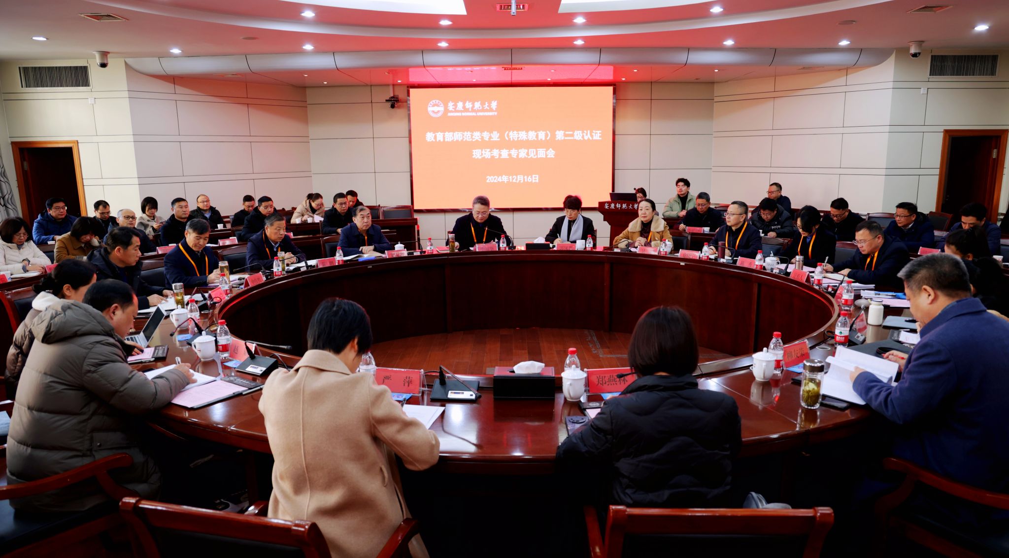 12月15日上午,郑燕林主持召开专家组见面会。专家组全体成员,安徽省教育评估中心负责人,学校党政领导李福华、彭凤莲、刘友忠、吴琼、秦朗、徐晓宁、申传胜、陈秀、张红飞、计裕人等出席会议。安徽省教育评估中心负责人宣读了认证文件并介绍了专家组成员及与会人员,并作相关工作要求说明。