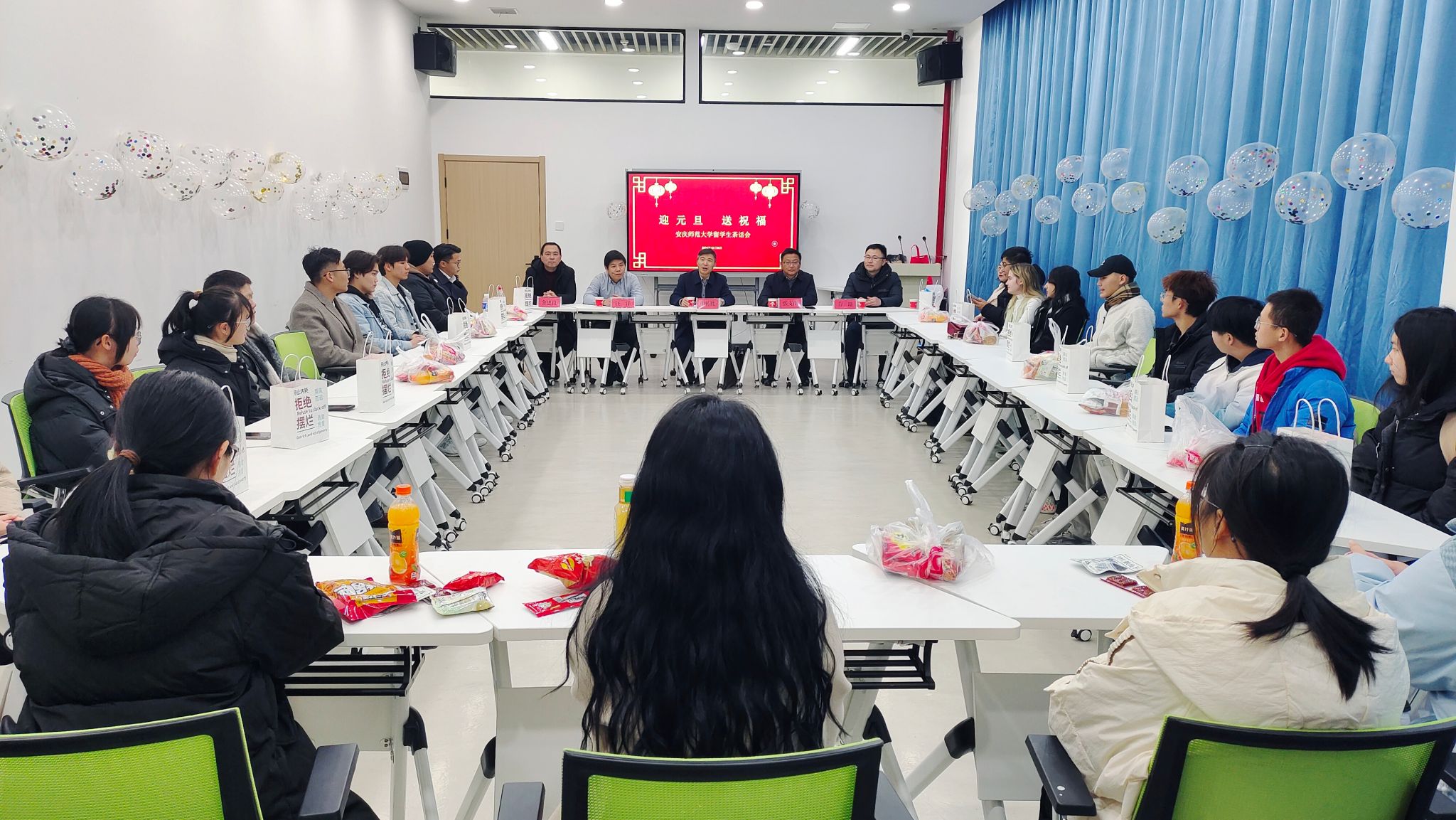 申传胜向全体留学生致以新年祝福,为留学生们解读了元旦所蕴含的中国文化,对留学生们克服文化差异、万里求学的精神表示赞许。他希望,同学们要担当文化交流的使者,多向亲人朋友介绍在中国的所见所学,相关部门要做好留学生的管理与服务工作,加大人文关怀力度。