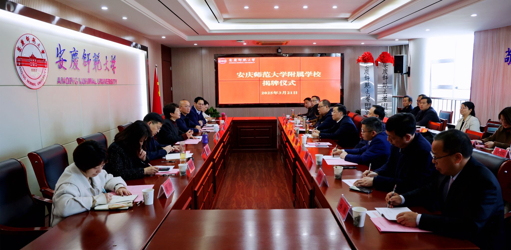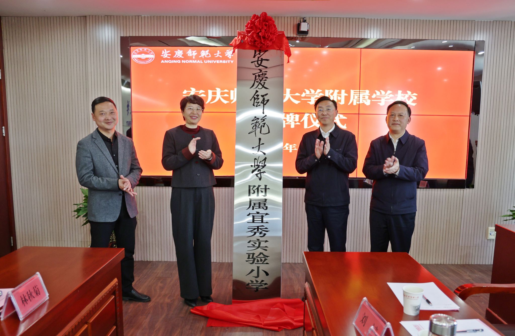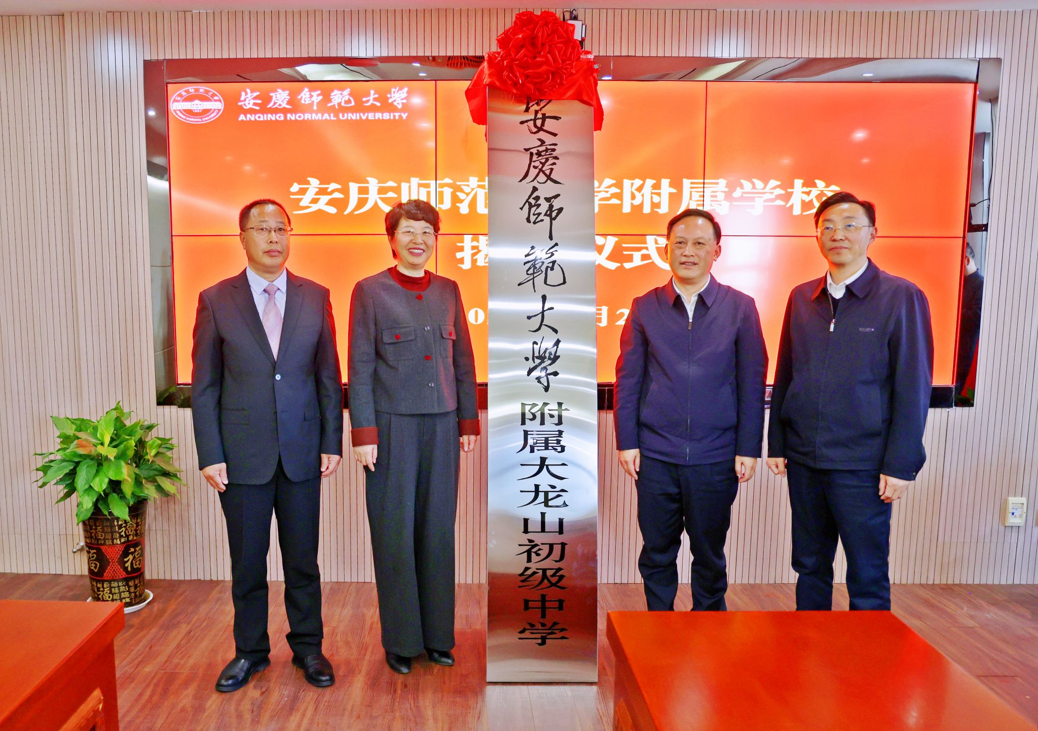 3月21日,学校与宜秀区人民政府举行beat365亚洲体育官方网站附属学校揭牌仪式。校长彭凤莲,宜秀区委副书记、区政府党组书记、区长吴曙,安庆市委教体工委书记、市教体局局长王良宜出席仪式。仪式由校党委常委、副校长肖新主持。安庆市教体局、宜秀区教体局、大龙山初级中学、宜秀区实验小学负责人,beat365人事处、教务处、服务经济社会发展处、研究生院、学生工作处和各师范专业所在学院主要负责人参加仪式。