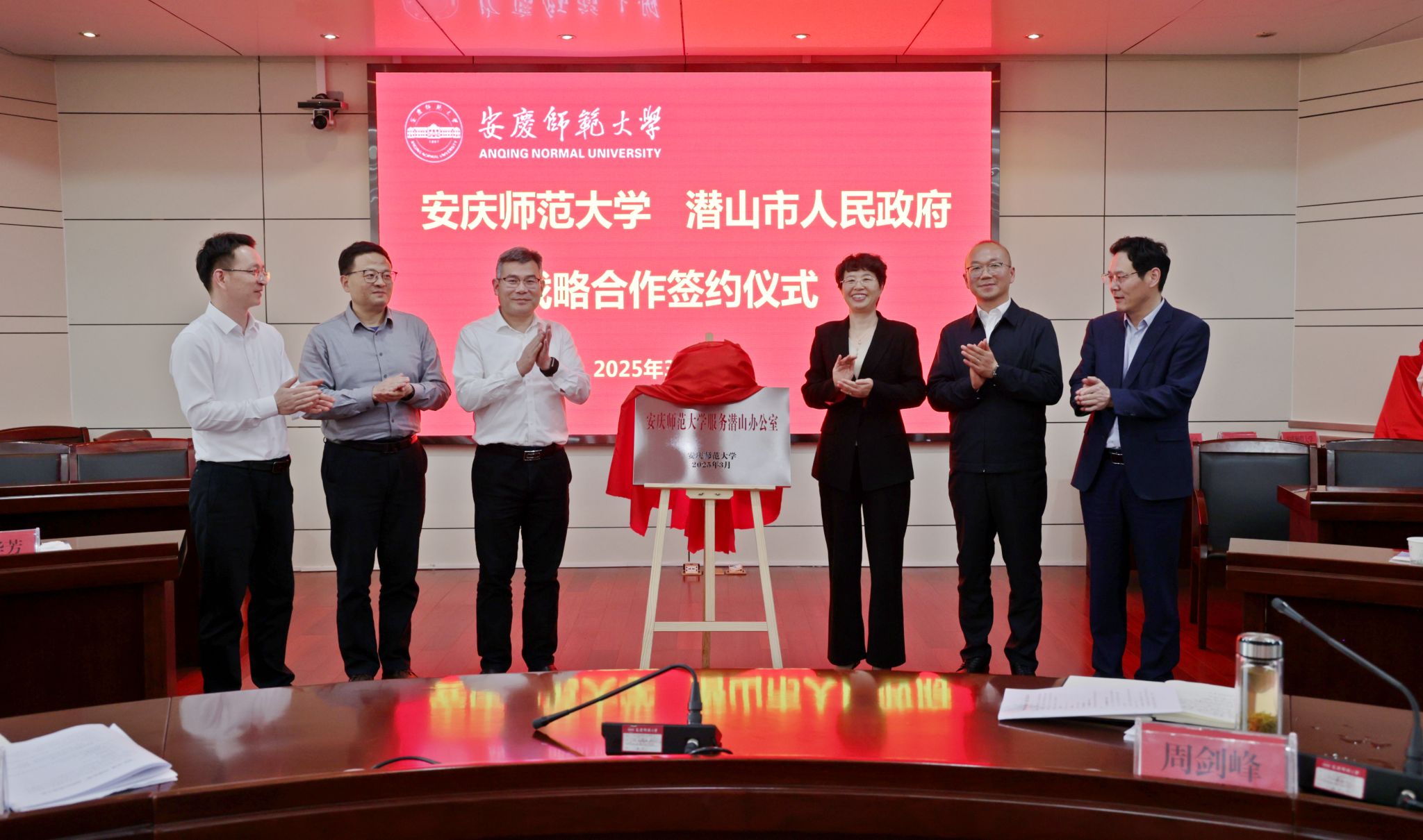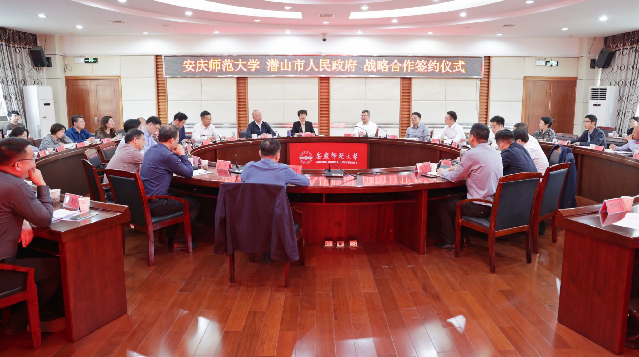 3月26日,学校与潜山市人民政府举行战略合作签约仪式。校长彭凤莲,校党委常委、副校长肖新出席座谈会。潜山市委书记王国林,市委常委、常务副市长汪沛,市委常委、组织部部长、统战部部长产敬春,市委办、政府办、天柱山管委会、市委组织部等部门,beat365人事处、教务处、科研处、服务经济社会发展处、研究生院、学生工作处等单位负责人参加会议。