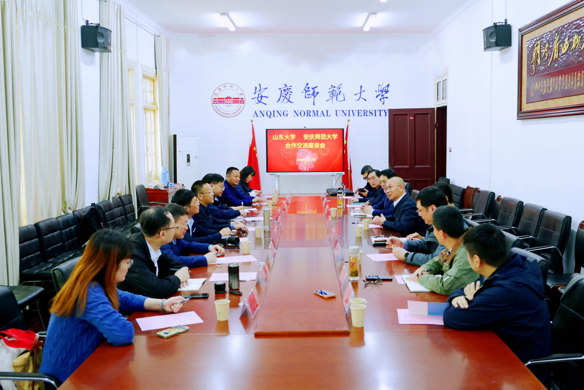 4月14日,山东大学安徽招生拓展组殷录民一行来校考察调研。校党委常委、副校长肖新主持座谈会。服务经济社会发展处、档案馆(博物馆)、人文学院、传媒学院、电子工程与智能制造学院等单位主要负责人,安庆市教育招生考试院有关负责人参加座谈会。