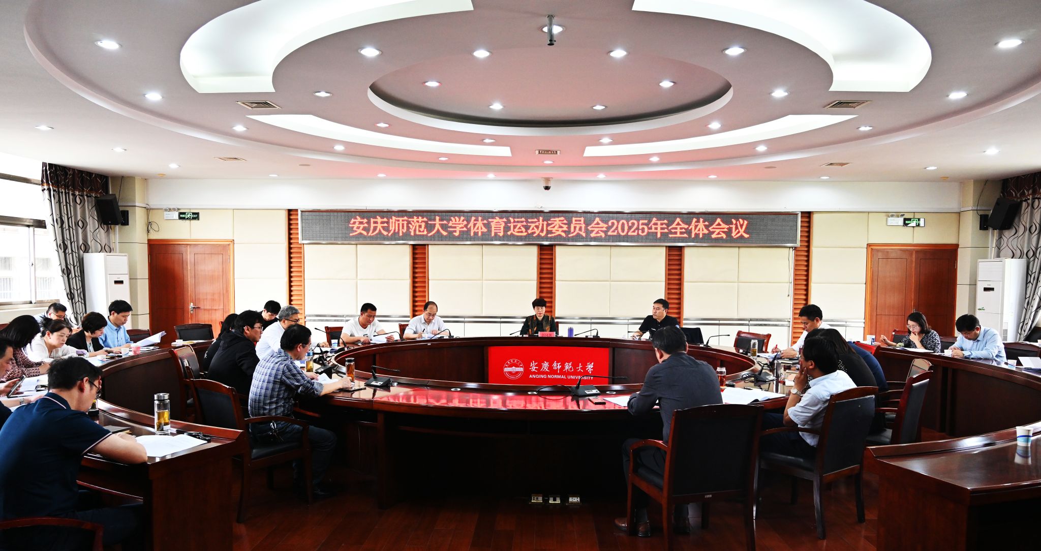 4月23日,学校2025年体育运动委员会会议在龙山校区行政楼二楼会议室召开。校长彭凤莲出席会议并讲话,校体委全体成员、校公共体育部全体成员参加会议。