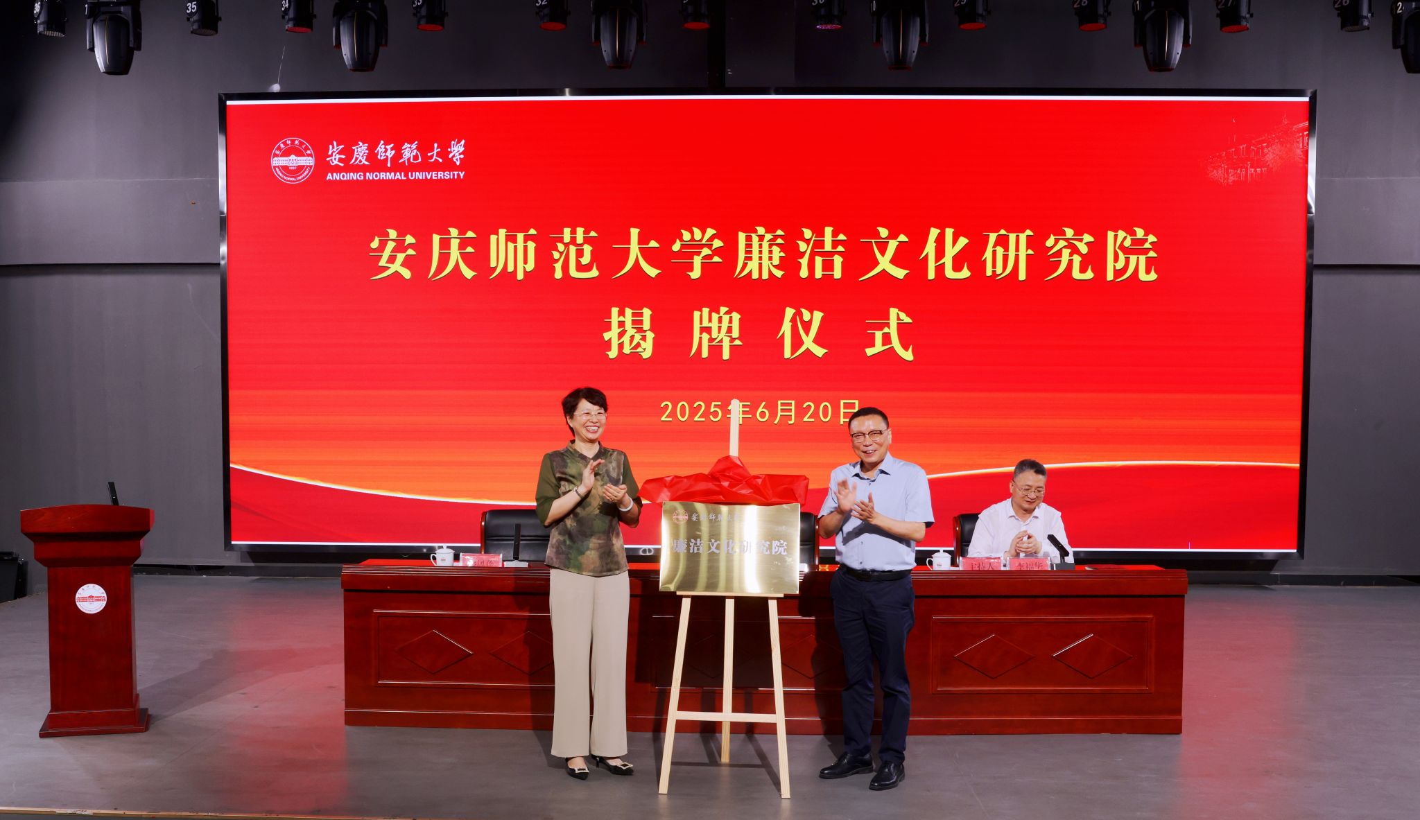6月20日,beat365亚洲体育官方网站廉洁文化研究院揭牌仪式在传媒学院报告厅举行。校长彭凤莲和中国社会科学院学部委员、古代史研究所卜宪群研究员共同为研究院揭牌。活动由校党委书记李福华主持,全体校党政领导出席揭牌仪式。