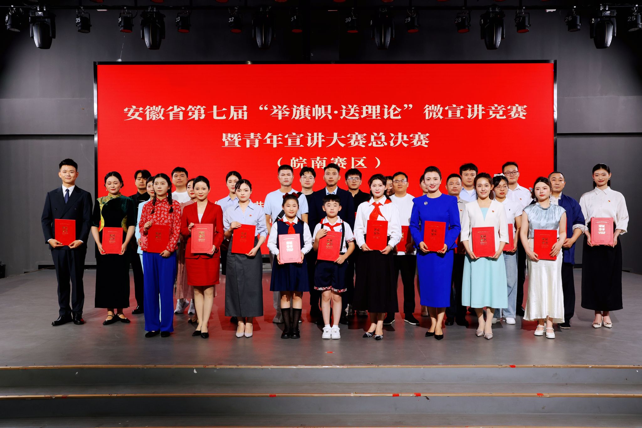 经过各地各部门的层层选拔推荐,皖南赛区共有14个宣讲作品进入总决赛。比赛现场,参赛选手们围绕“皖美新征程 青春理同行”主题,以生动的语言、鲜活的事例和饱满的热情,通过情景剧、相声、朗诵等艺术化宣讲的形式将党的创新理论融入基层治理、乡村振兴、青年奋斗等鲜活案例。