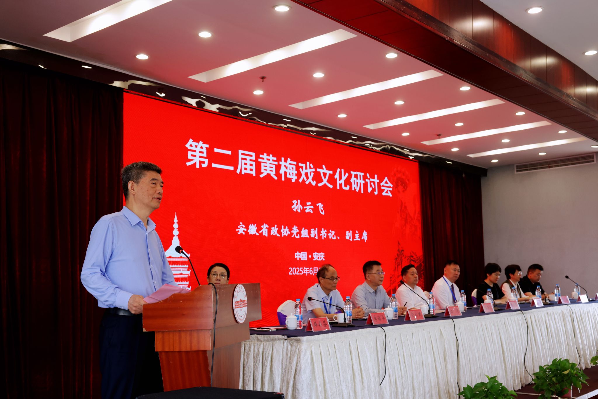 孙云飞代表省政协对会议的召开表示热烈祝贺,并对近年来安庆市扎实推进黄梅戏的传承与创新工作表示充分肯定。他强调,要积极整合各类资源,加强对黄梅戏经典剧目的创排;要进一步整合新成立的长江文化研究院、黄梅戏文化研究院以及安徽中国黄梅戏博物馆人才资源,做好人才接力培育;要充分利用现代手段,有效拓宽黄梅戏的传播渠道,推动优秀传统文化创造性转化、创新性发展。希望专家学者们能够以本次会议为契机,畅所欲言、深入交流,共同探讨黄梅戏文化的创新发展路径,为黄梅戏文化更加繁荣贡献智慧和力量。孙云飞的讲话政治站位高、思想认识深,具有很强的指导性、政策性和时代性与实践性,为进一步繁荣黄梅戏文化提供了理论支撑和实践指向。