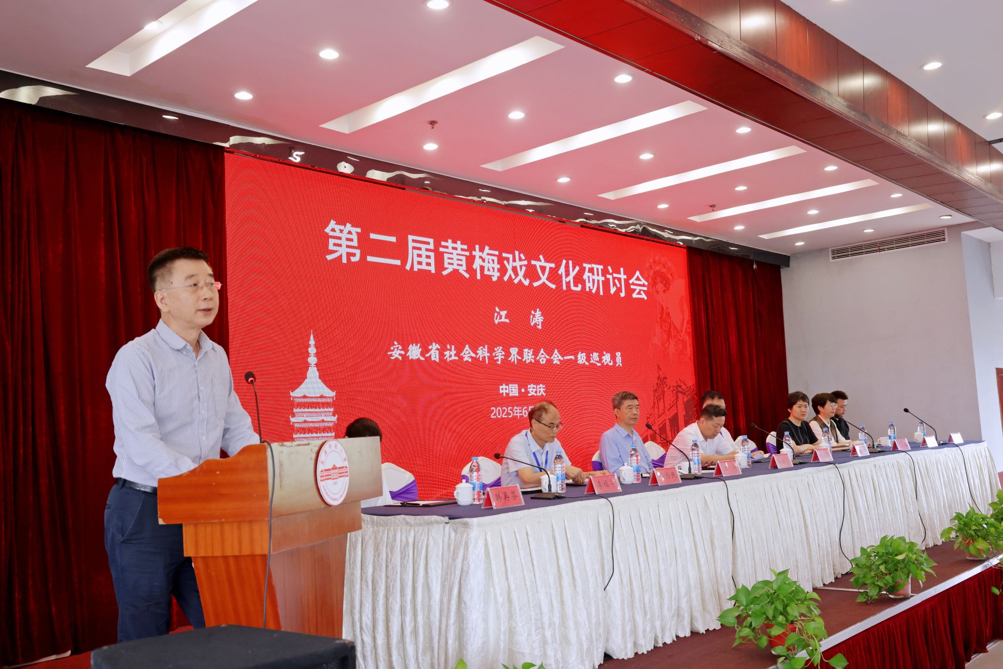 江涛在致辞中总结了全省社科界一年来认真贯彻落实习近平总书记考察安徽重要讲话精神开展五大文化研究的情况。他强调,要自觉从中华文明的角度审视黄梅戏文化的发展脉络,要进一步厘清黄梅戏文化研究的体系结构和理论方法及学术边界,要推动黄梅戏文化和旅游的深度融合,要推动黄梅戏文化传播模式逐步向鲜活多元年轻化的方向转变。期待beat365亚洲体育官方网站以筹备成立安徽省黄梅戏文化研究会为契机,进一步整合好全省黄梅戏文化研究力量,打造好特色学科体系和大型学术平台,以全体系大平台支撑大项目、大成果,形成具有安徽特色、全国标识性的黄梅戏文化研究学术品牌。