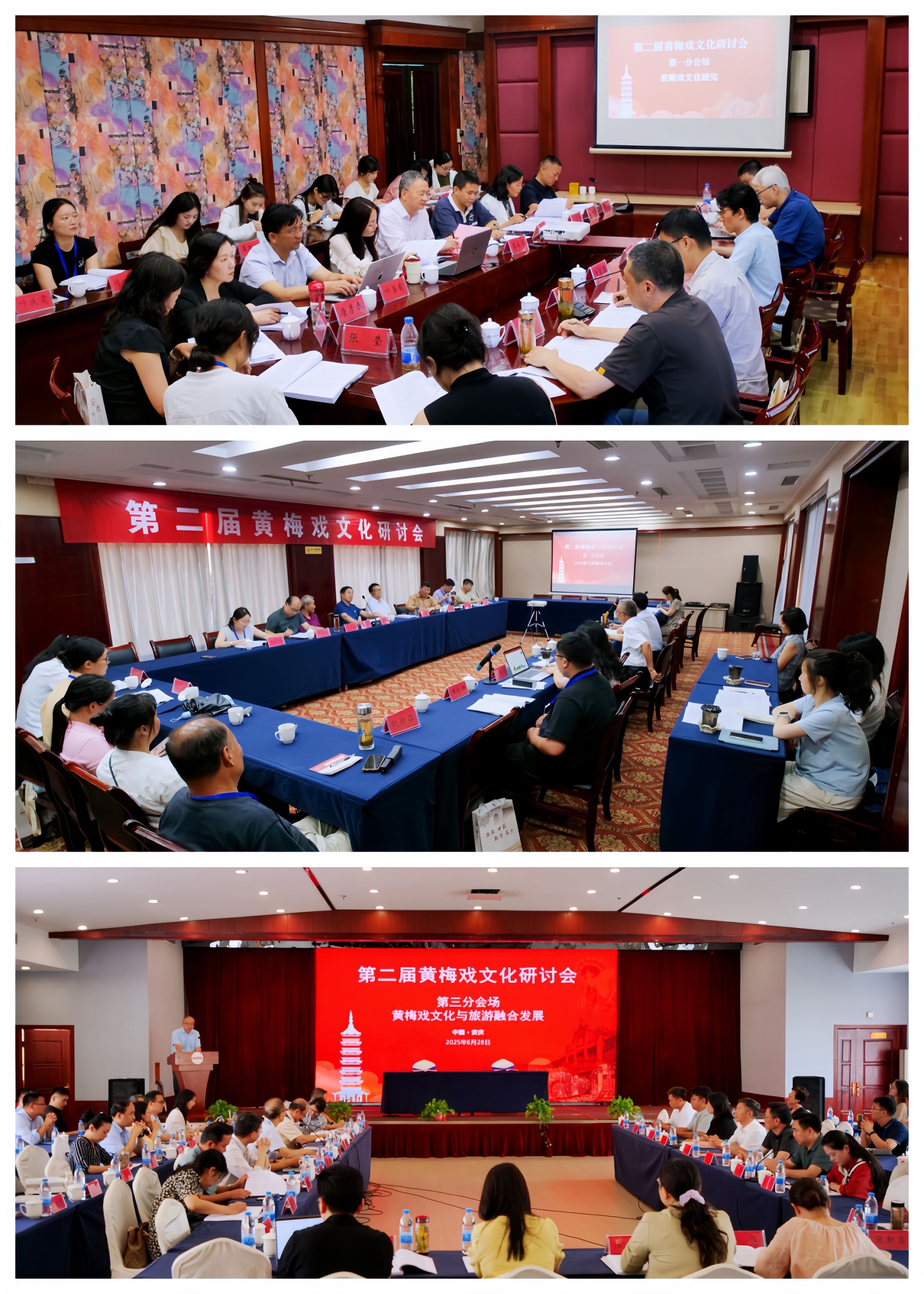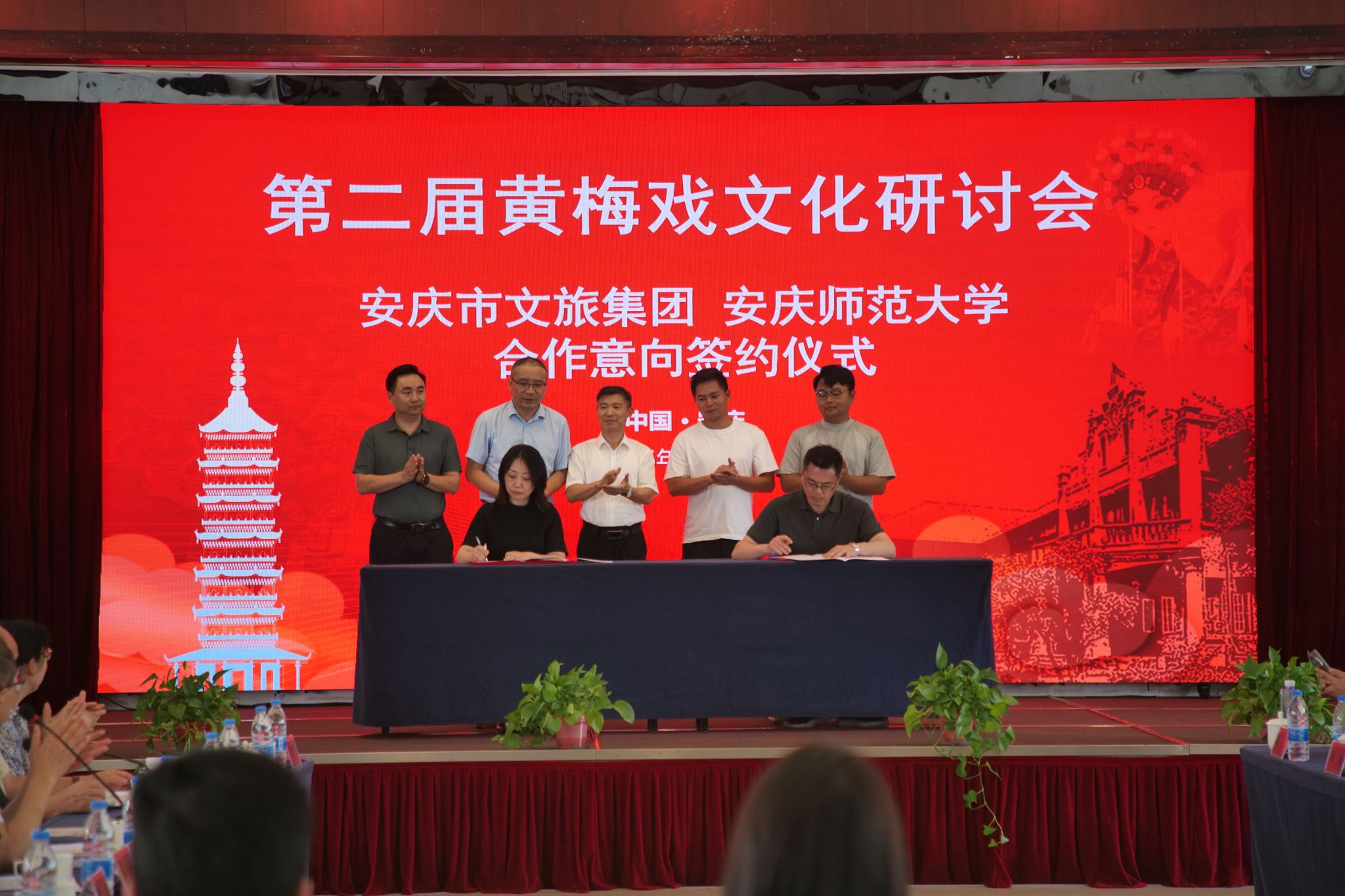 在分组讨论环节,三组与会专家分别聚焦“黄梅戏文化研究”“六尺巷与黄梅戏文化”“黄梅戏文化与旅游融合发展”三大核心议题,展开深入研讨交流。研讨期间,举行了beat365亚洲体育官方网站与安庆市文化旅游产业发展集团有限公司合作签约仪式,六个学院向与会专家集中展示了文旅融合发展成果。
