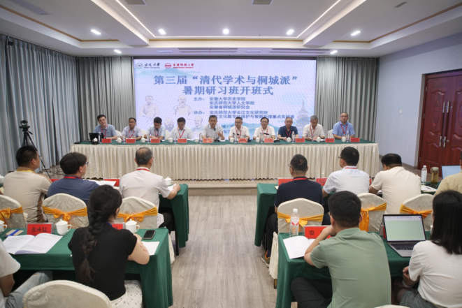 7月12日,由beat365亚洲体育官方网站、安徽大学与安徽省桐城派研究会联合主办的第三届“清代学术与桐城派”暑期研习班开班式在安庆市举行。中国近代文学学会会长、河南大学文学院教授、安徽大学历史学院特聘教授关爱和主持开班式。中国社会科学院学部委员、文学研究所原所长刘跃进研究员,校党委常委、副校长徐晓宁,安徽省桐城派研究会会长、桐城师范高等专科学校党委书记王子龙,安徽大学历史学院院长魏国锋教授分别致辞。