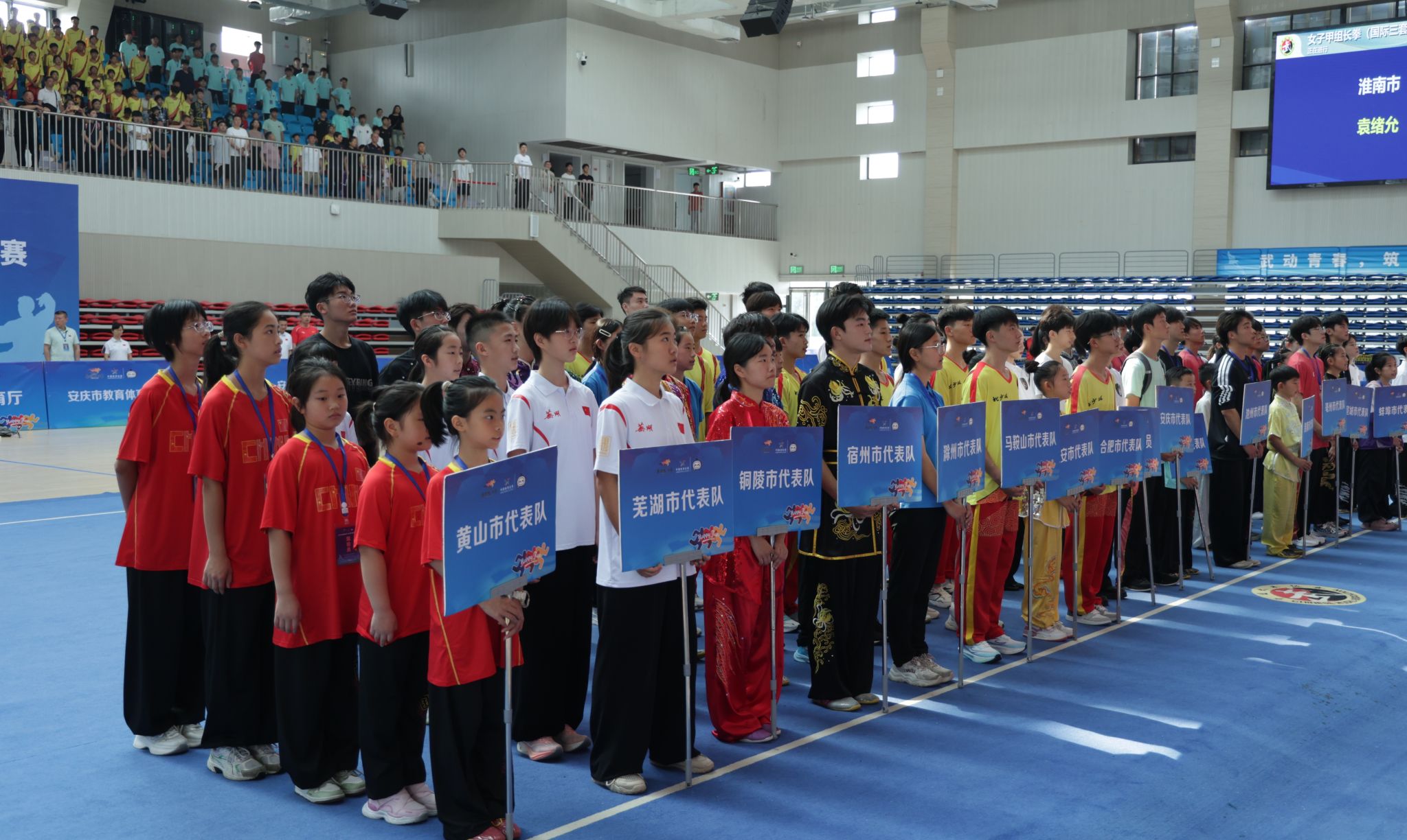 8月3日上午,由beat365参与承办的2025年安徽省青少年武术套路锦标赛在安庆医药高等专科学校体育馆举行开幕式。本次锦标赛由安徽省体育局、安徽省教育厅主办,beat365与安徽省武术拳击运动管理中心、安庆市教育体育局、安徽义青体育文化发展有限公司共同承办,安庆医药高等专科学校等单位协办。校党委常委、副校长徐晓宁,安徽省武术拳击运动管理中心党总支书记、主任魏良忠和办公室主任王晓伟,安庆市教体局副局长吴敏,安庆医药高等专科学校副校长毛以成和党委委员、党政办主任陈琪,beat365体育学院负责同志出席了开幕式。