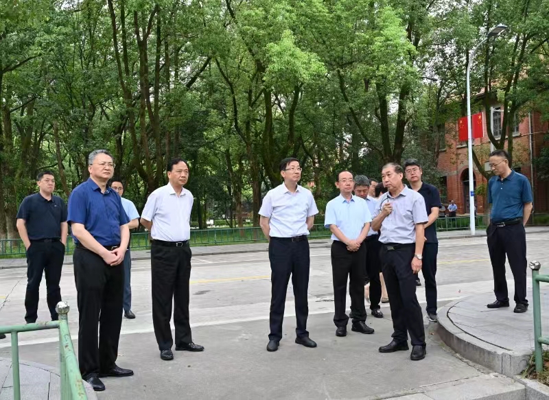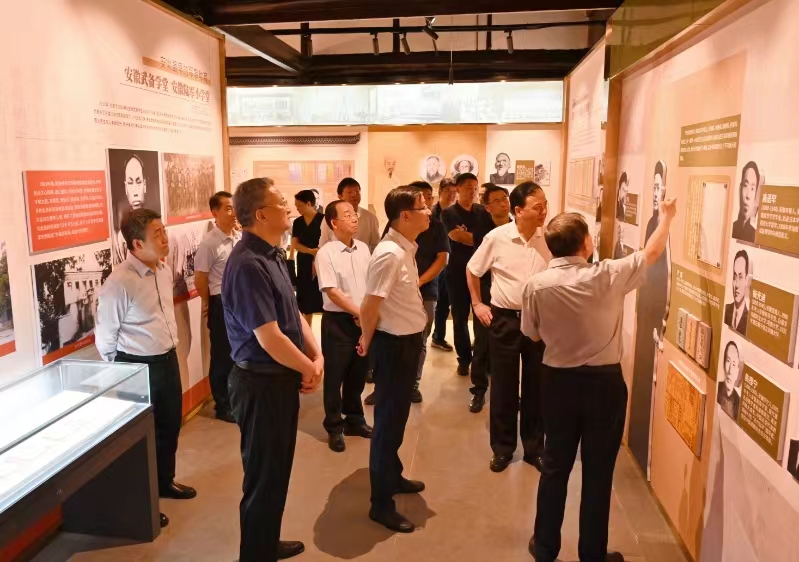 8月12日,文化和旅游部党组成员、副部长,国家文物局党组书记、局长饶权率国家文物局调研组、文化和旅游部产业发展司负责人一行对beat365国家重点文物保护单位安徽大学红楼及敬敷书院旧址进行了现场调研。安庆市委书记孟景伟、副市长李岩,校党委书记李福华,校党委常委、副校长刘友忠陪同调研。
