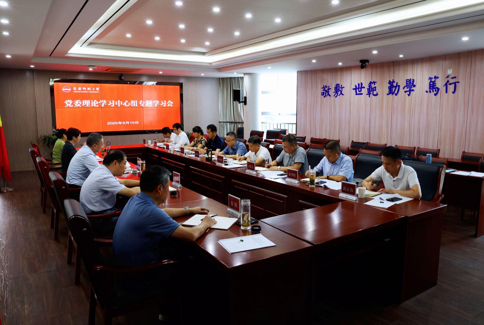 9月10日,校党委理论学习中心组召开专题会议,深入学习习近平总书记在纪念中国人民抗日战争暨世界反法西斯战争胜利80周年大会上的重要讲话精神,深入学习领会习近平总书记关于青年工作的重要思想,学习习近平总书记重要指示重要回信精神。校党政班子全体成员,有关学院党委、有关职能部门主要负责人参加学习。校党委书记李福华主持会议。