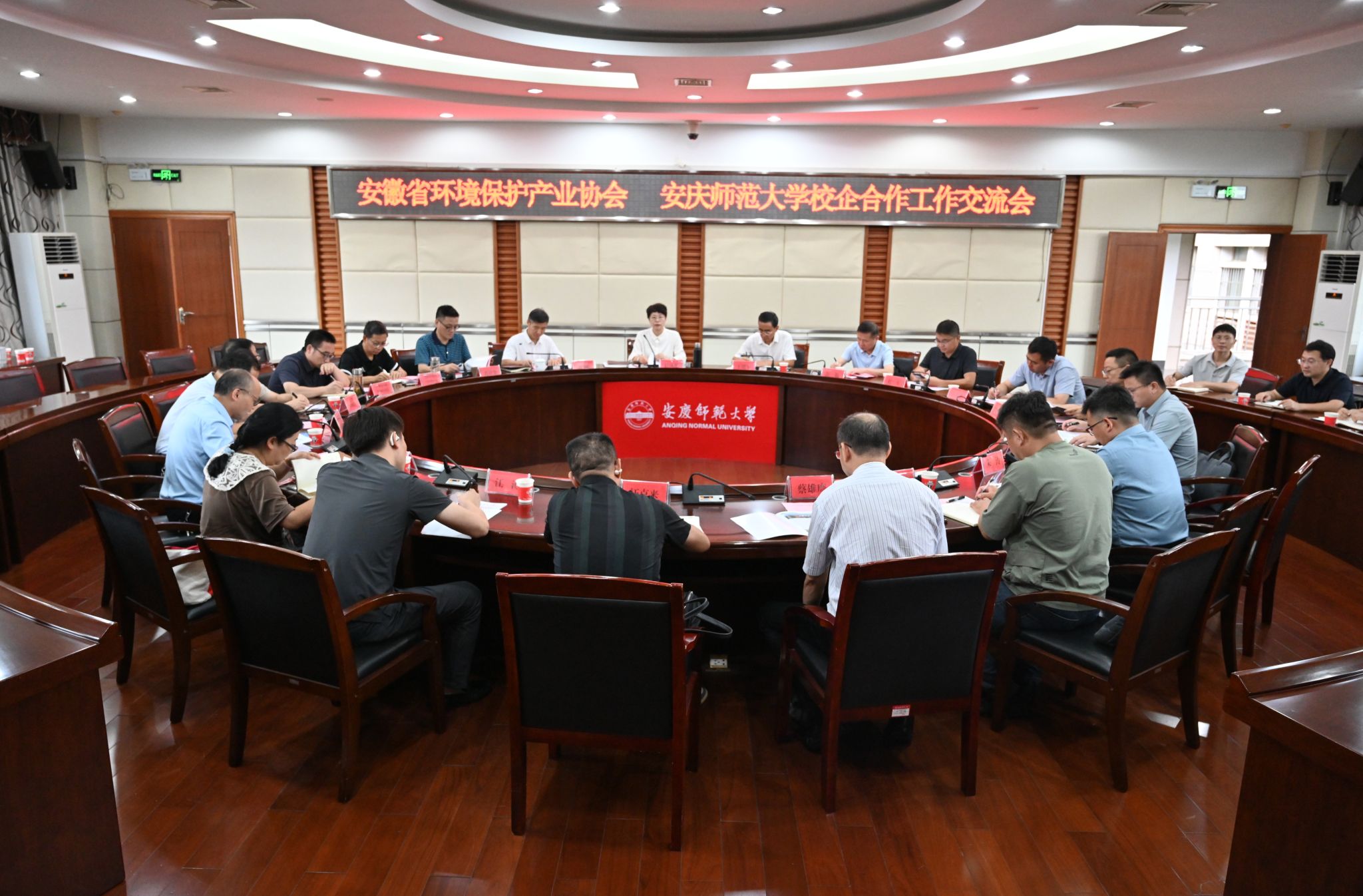 9月9日,学校与安徽省环境保护产业协会举行校企合作工作交流会。校长彭凤莲,校党委常委、副校长申传胜,安徽省环境保护产业协会执行会长王思军、协会党建指导员许敬出席会议,科研处、服务经济社会发展处(大别山区域发展研究院)、实验室建设与管理中心、化学化工学院、电子工程与智能制造学院、生命科学学院、资源环境学院等单位负责人以及十余家环保企业代表参加交流会。会议由申传胜主持。