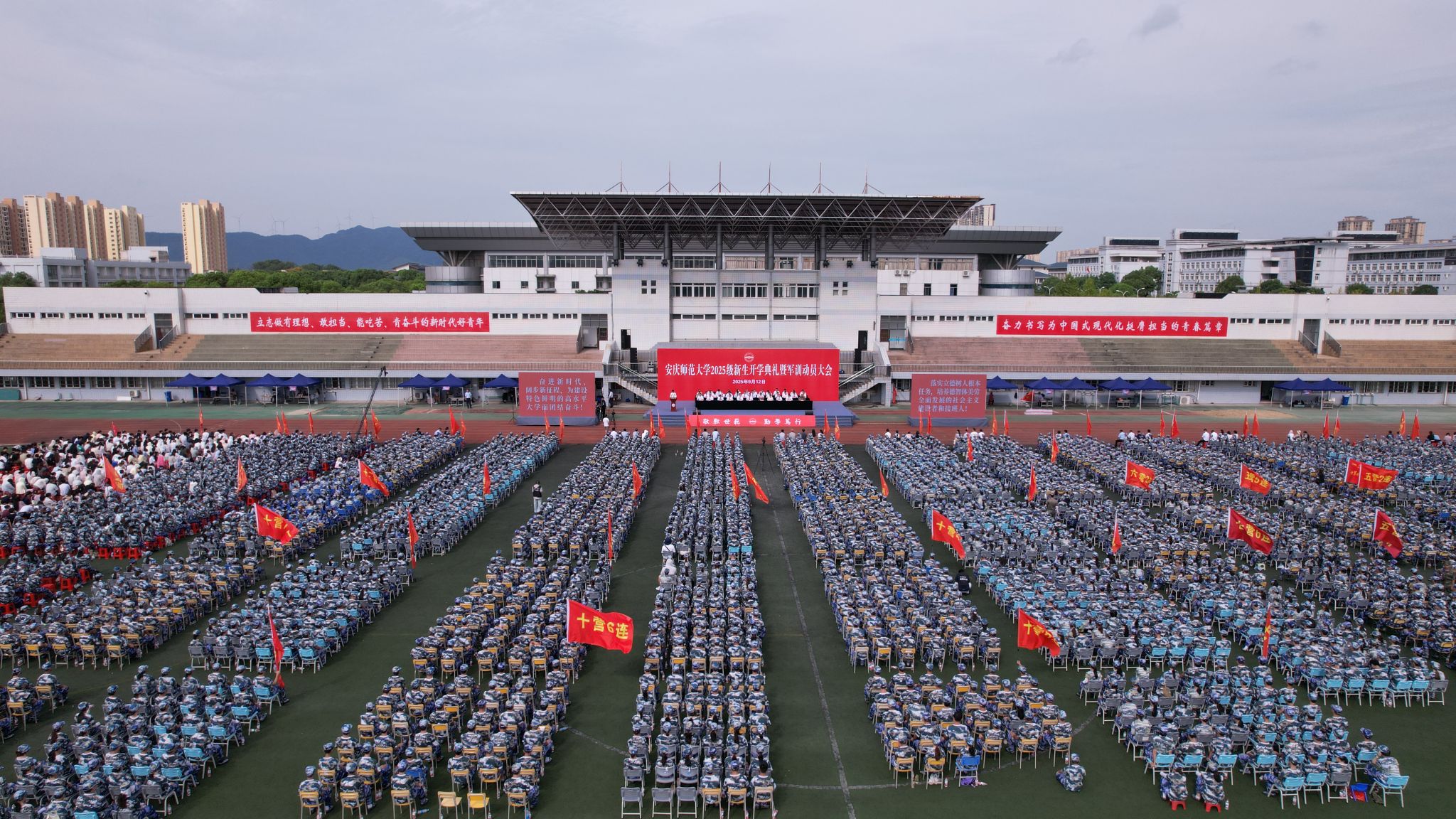 9月12日,beat365在龙山校区运动场隆重举行2025级新生开学典礼暨军训动员大会,4700余名新生开启人生新篇章。校党政领导李福华、彭凤莲、崔明、吴琼、秦朗、徐晓宁、申传胜、张红飞、计裕人,武警某部副参谋长杨角、大队长张志远,校友代表、中国海洋大学教授、博士生导师、2003届计算机科学与技术专业毕业生汪克亮出席典礼。校军训工作领导小组全体成员,各学院及相关单位负责人、2025级全体新生等参加典礼。