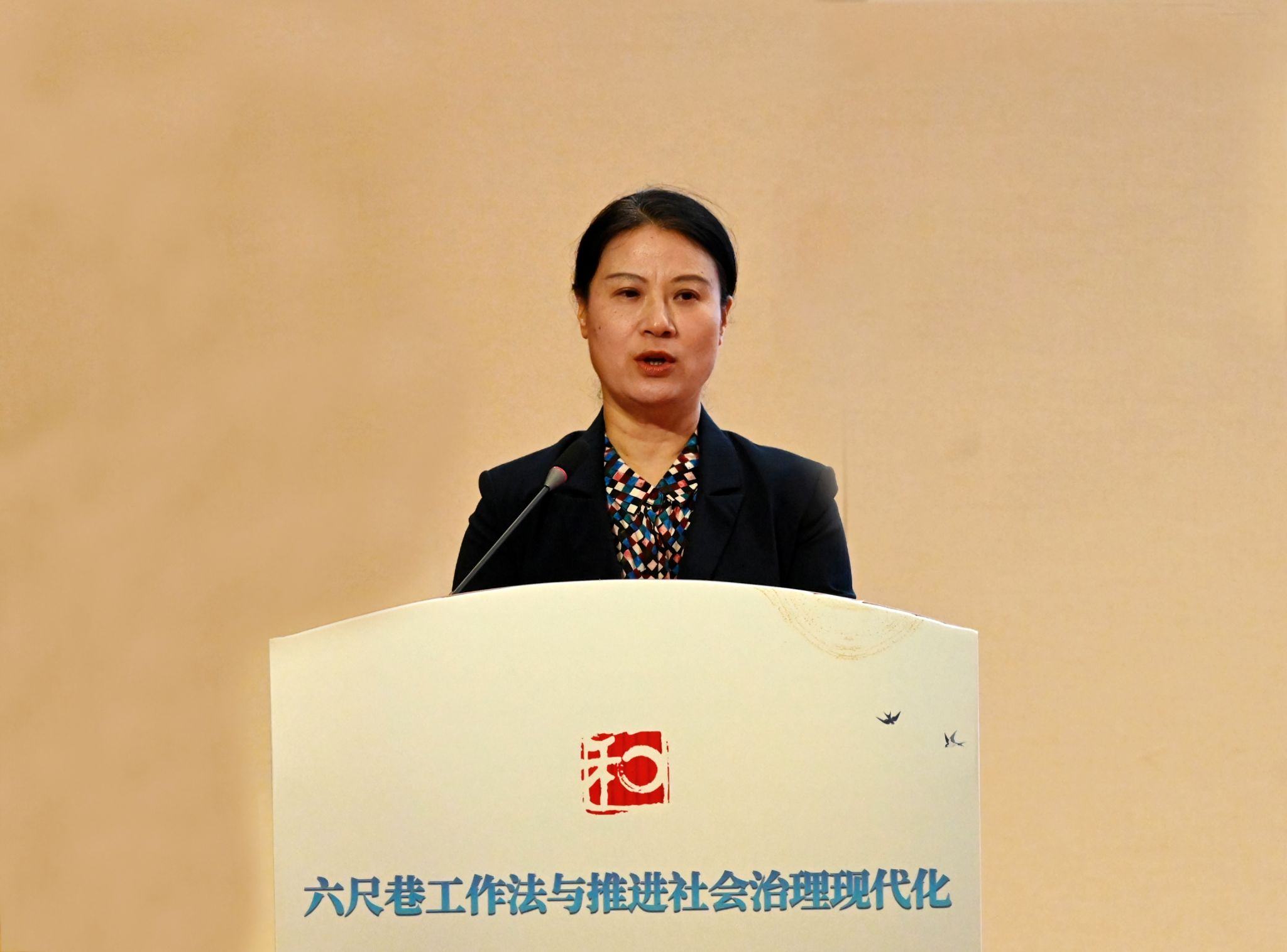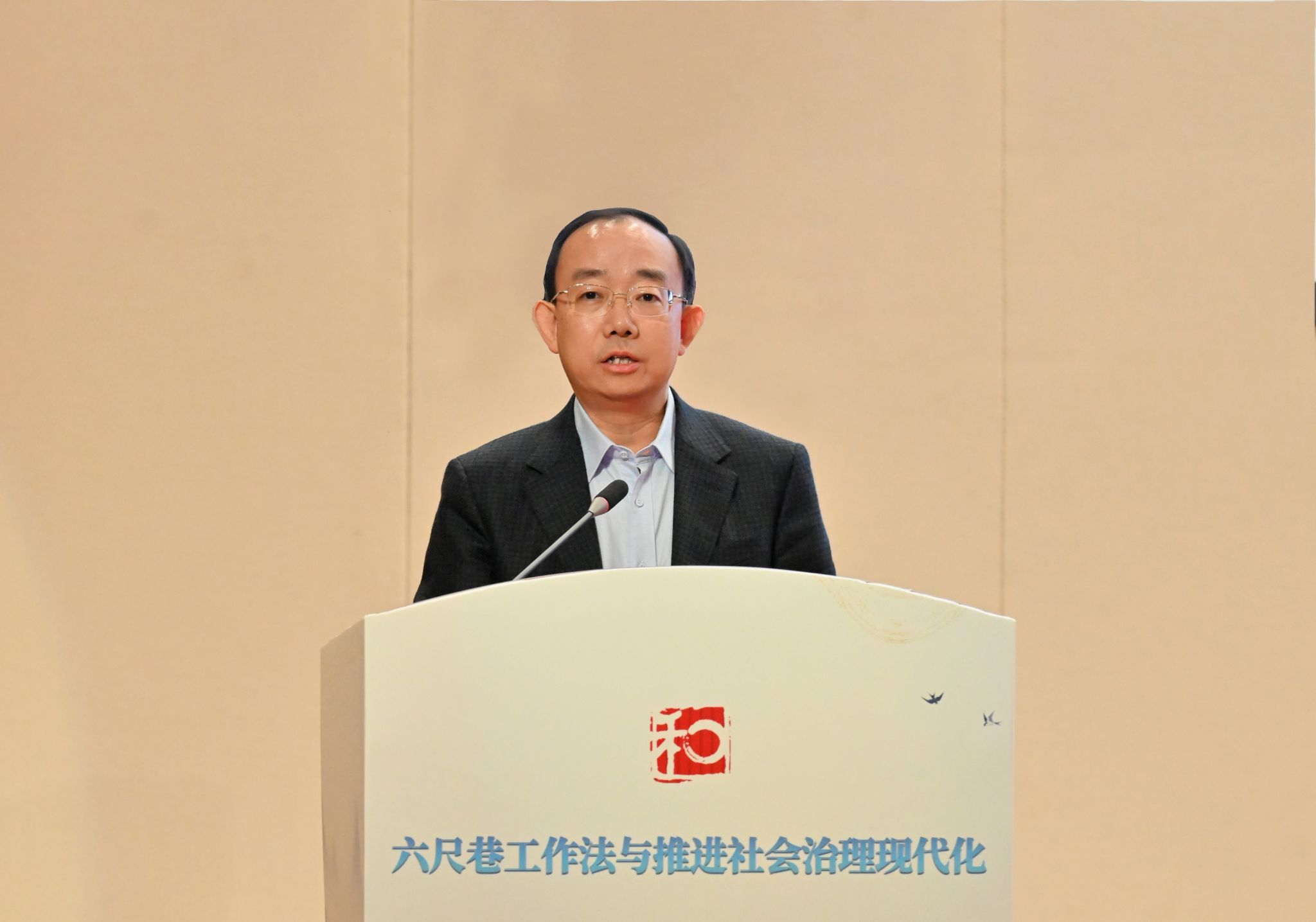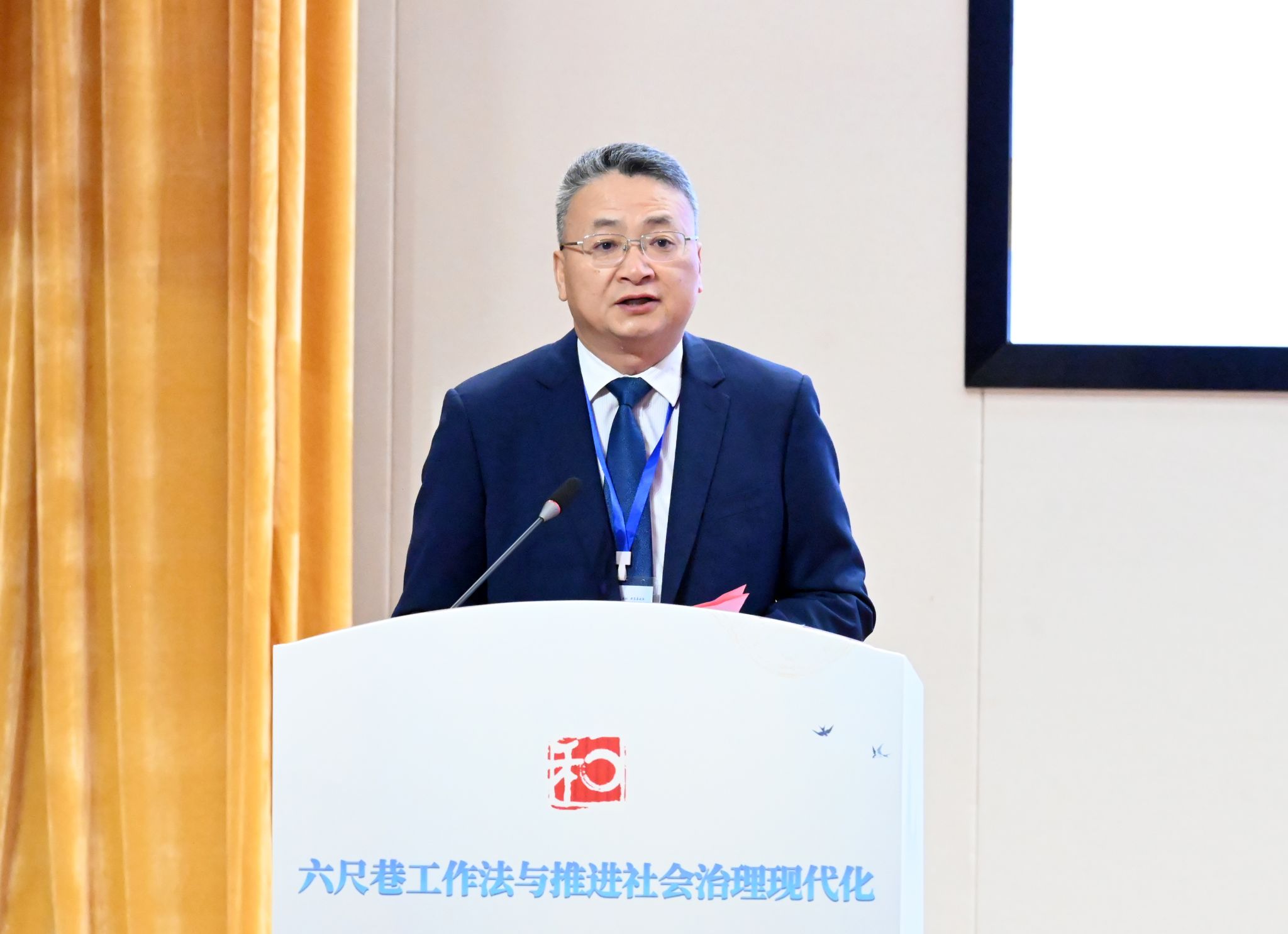 赵昌华代表中国法学会对研讨会的召开表示热烈祝贺,就弘扬中华优秀传统法律文化、“六尺巷工作法”赋能社会治理现代化提出了意见。他回顾了习近平总书记考察六尺巷时的重要指示,强调“六尺巷”典故蕴含的“谦和礼让、以和为贵”理念是中华优秀传统法律文化的生动缩影。他指出,要坚定文化自信,在历史传承和时代发展中充分认识“六尺巷工作法”的理论意义和实践价值;要立足新时代新情况,深化理论研究,为社会治理现代化提供有力学理支撑;要坚持实践导向,积极探索,激活社会治理现代化的创新动能。他强调,中国社会治理具有重和谐、重预防、重协同的特质,需要坚持实践导向,通过人才培养、立法衔接、文化传播与试点推广等方式,激活社会治理创新动能,为推进社会治理现代化、建设更高水平的平安中国法治中国贡献力量。