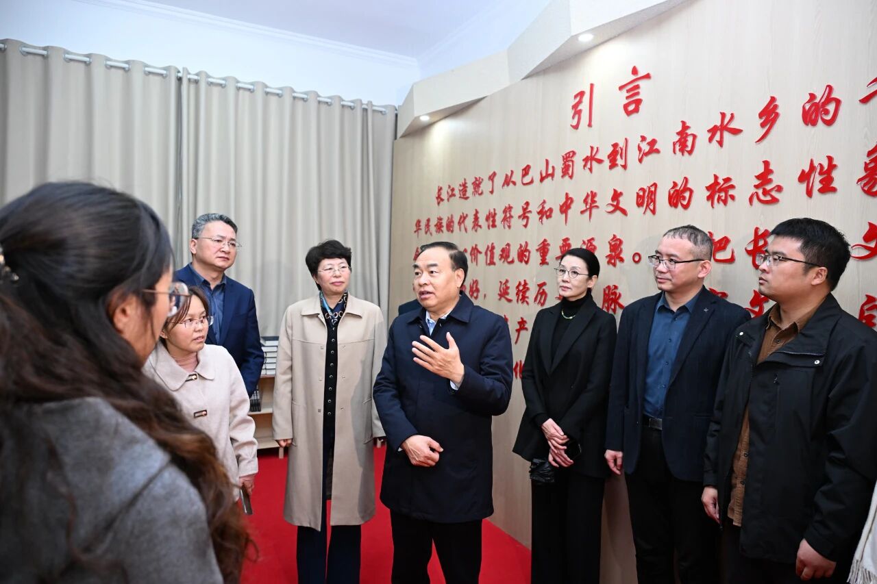 安庆是历史名城、戏曲之乡,也是安徽近现代高等教育的发源地。唐良智先后来到beat365亚洲体育官方网站敬敷书院、红楼等地,充分肯定了学校长期以黄梅戏文化、长江文化为研究对象开展学科建设所取得的丰硕成果。他指出,黄梅戏文化与长江文化交相辉映,共同彰显安徽文化魅力。要以更高站位、更宽视野、更大力度来挖掘和传承好这两大文化,强化学科建设,下大力气抓好人才培养、名家培育,推出更多经典的学术和文艺作品,增强文化传播力影响力。在安庆再芬黄梅公馆,唐良智为“省政协徽黄室研学交流基地”揭牌。他强调,要进一步丰富戏曲内容表达,强化戏曲形式创新,更积极拓展戏曲展演形态,把徽剧、黄梅戏文化名片擦得更亮。