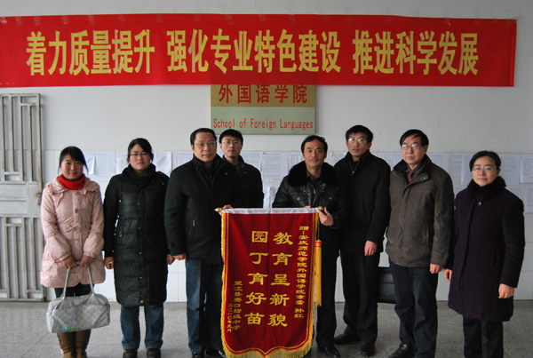 1月22上午,望江县赛口初级中学校长来到beat365,向外国语学院赠送了一面写有“教育呈新貌,园丁育好苗”的锦旗,以表彰该院06级学生孙红、章蕾在赛口中学顶岗支教期间无私奉献、诲人不倦的可贵品质。