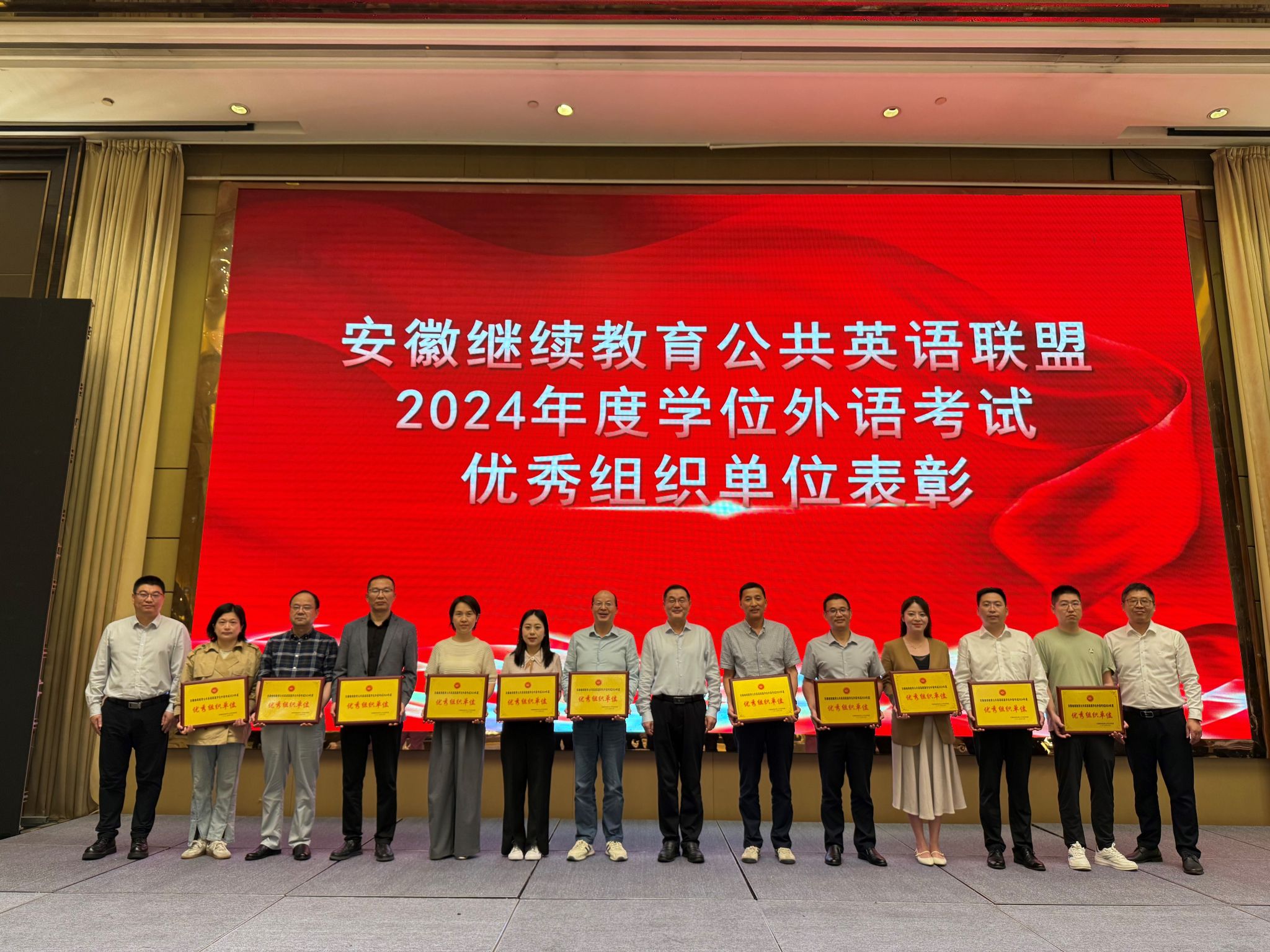 5月8日,安徽继续教育公共英语联盟2025年上半年工作会议在六安召开,安徽开放大学党委委员、副校长诸咸斌出席会议并致辞。会议表彰了安徽继续教育公共英语联盟2024年度学位外语考试优秀组织单位等奖项,beat365荣获联盟2024年度学位外语考试优秀组织单位,继续教育学院学历教育部教师方庆岚获评优秀考务工作者。这是beat365继2023年荣获联盟学位外语考试优秀组织单位后再次获此表彰。