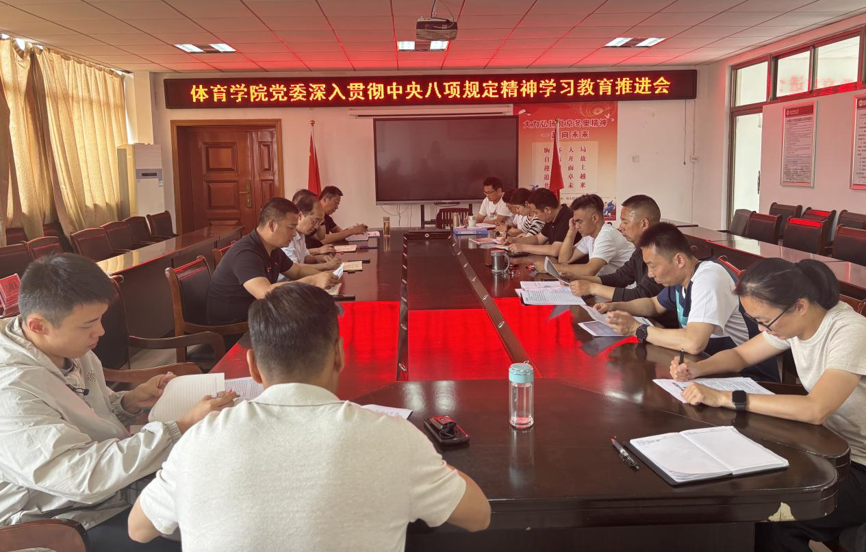 5月13日,体育学院党委在三楼会议室召开深入贯彻中央八项规定精神学习教育推进会。体育学院党委书记王玮主持会议,体育学院党委秘书、组织员、各党支部书记、支部委员参加会议。