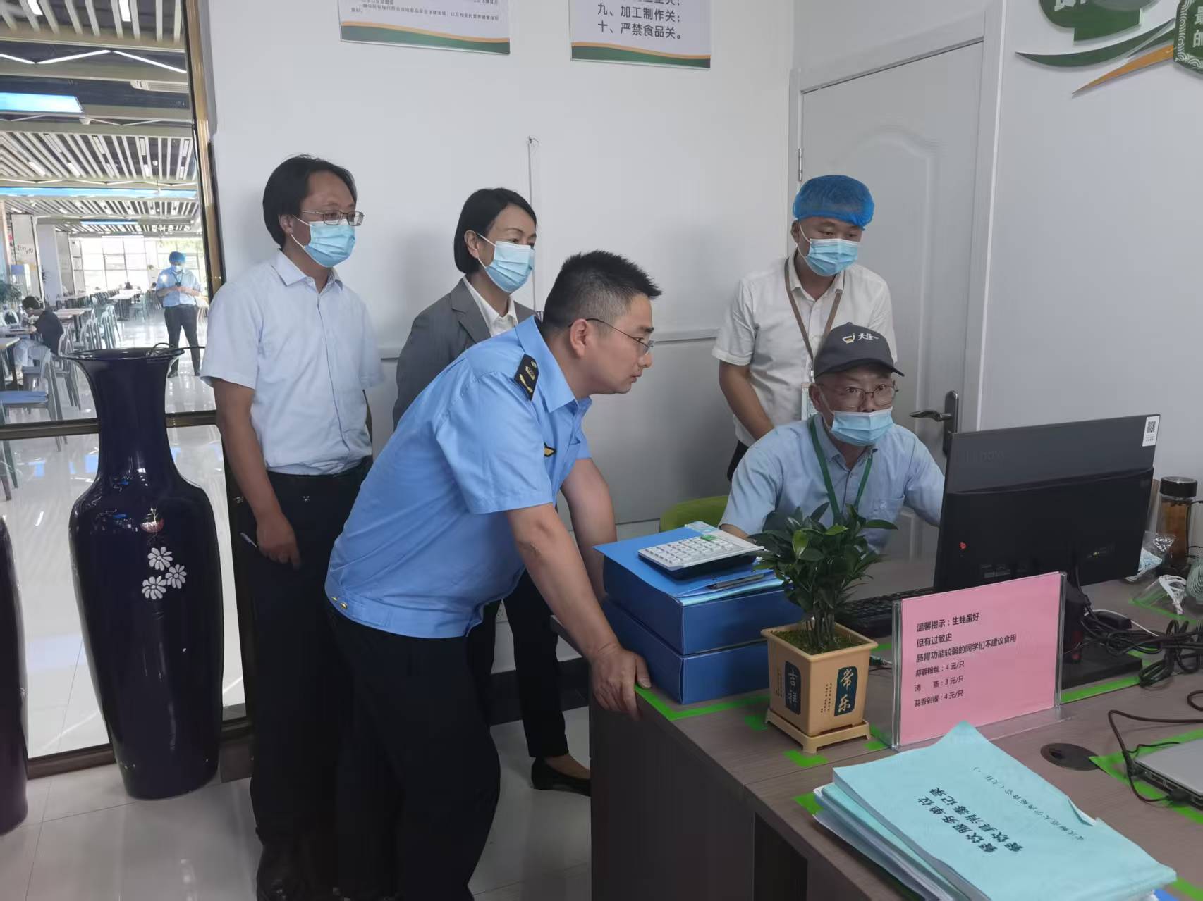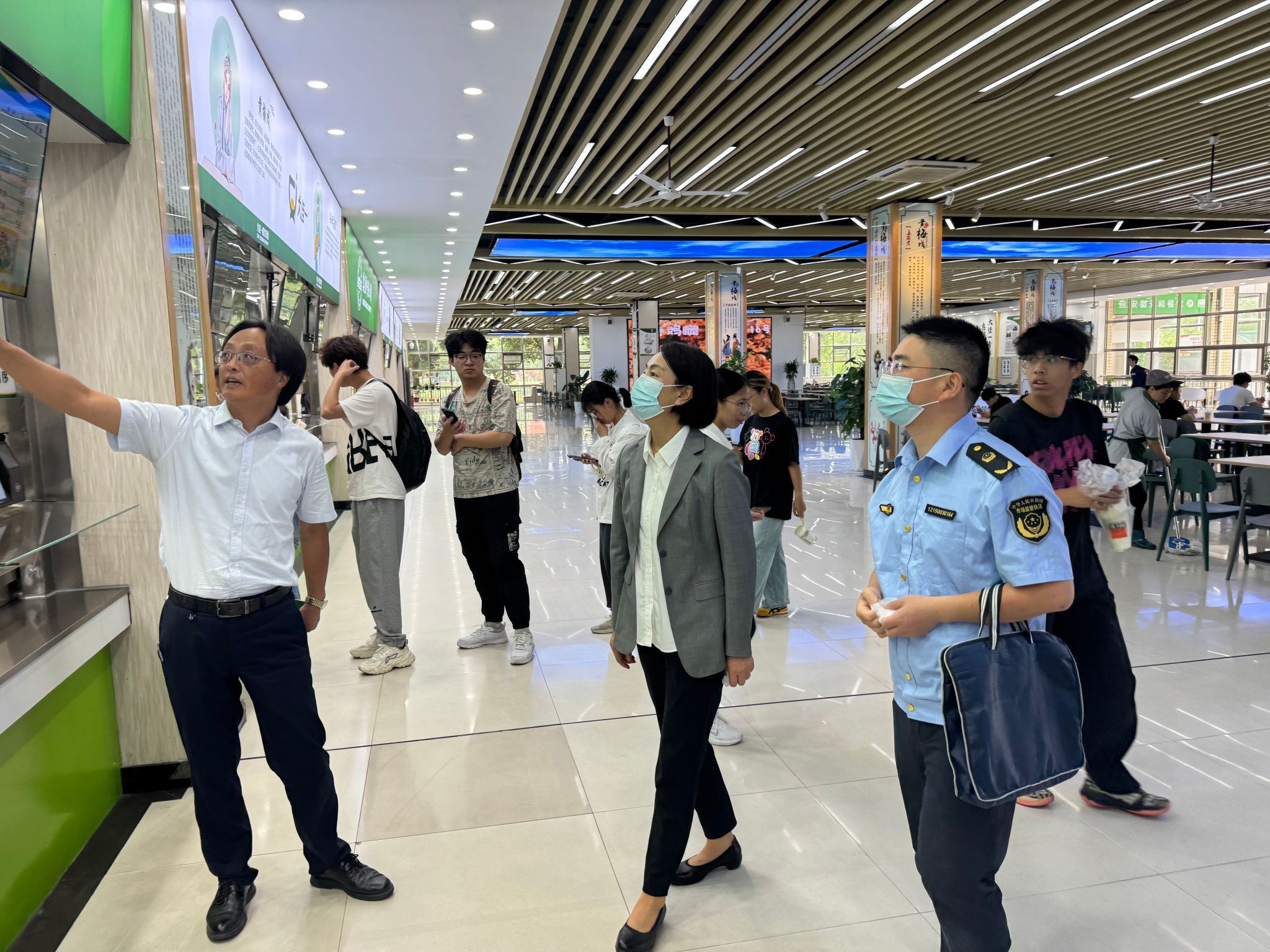 6月4日,安庆市市场监督管理局党组书记、局长焦玲带队到beat365检查指导食堂食品安全工作。基建与后勤管理处处长吕旭进等参加检查。