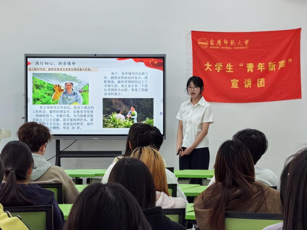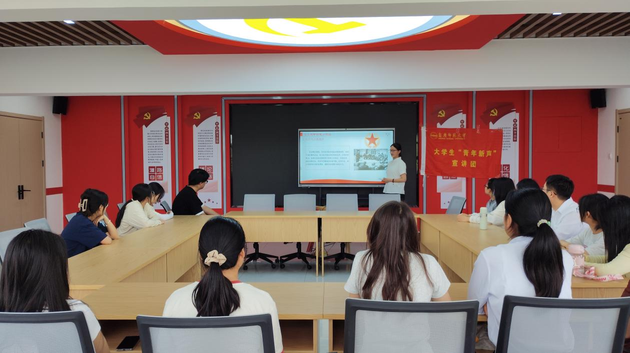 从延安窑洞的灯火到建党初心的誓言;从抗美援朝的冲锋号角到焦裕禄“治理三害”的智慧;从砥砺奋进的脱贫攻坚到无私奉献的雷锋精神……宣讲团的成员们循着历史脉络,结合不同时期的历史文献,通过情景再现、互动问答等多样形式,将抽象的精神具象化为一个个鲜活的故事。“让学生们在沉浸式体验中感悟红色精神力量,才能让党的理论‘活’起来。”宣讲团负责人、思想政治教育专业2022(2)班的田文博说。
