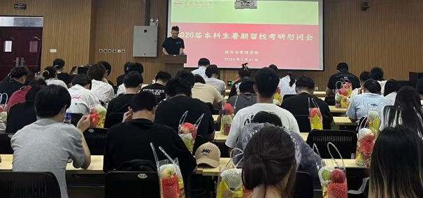 7月21日,经济与管理学院在M112报告厅举办2026届暑期留校考研学生慰问会。经济与管理学院党委书记刘燕杰、2026届全体辅导员老师、2026届暑期留校考研学生参加此次慰问会,会议由经济与管理学院团委负责人王清主持。