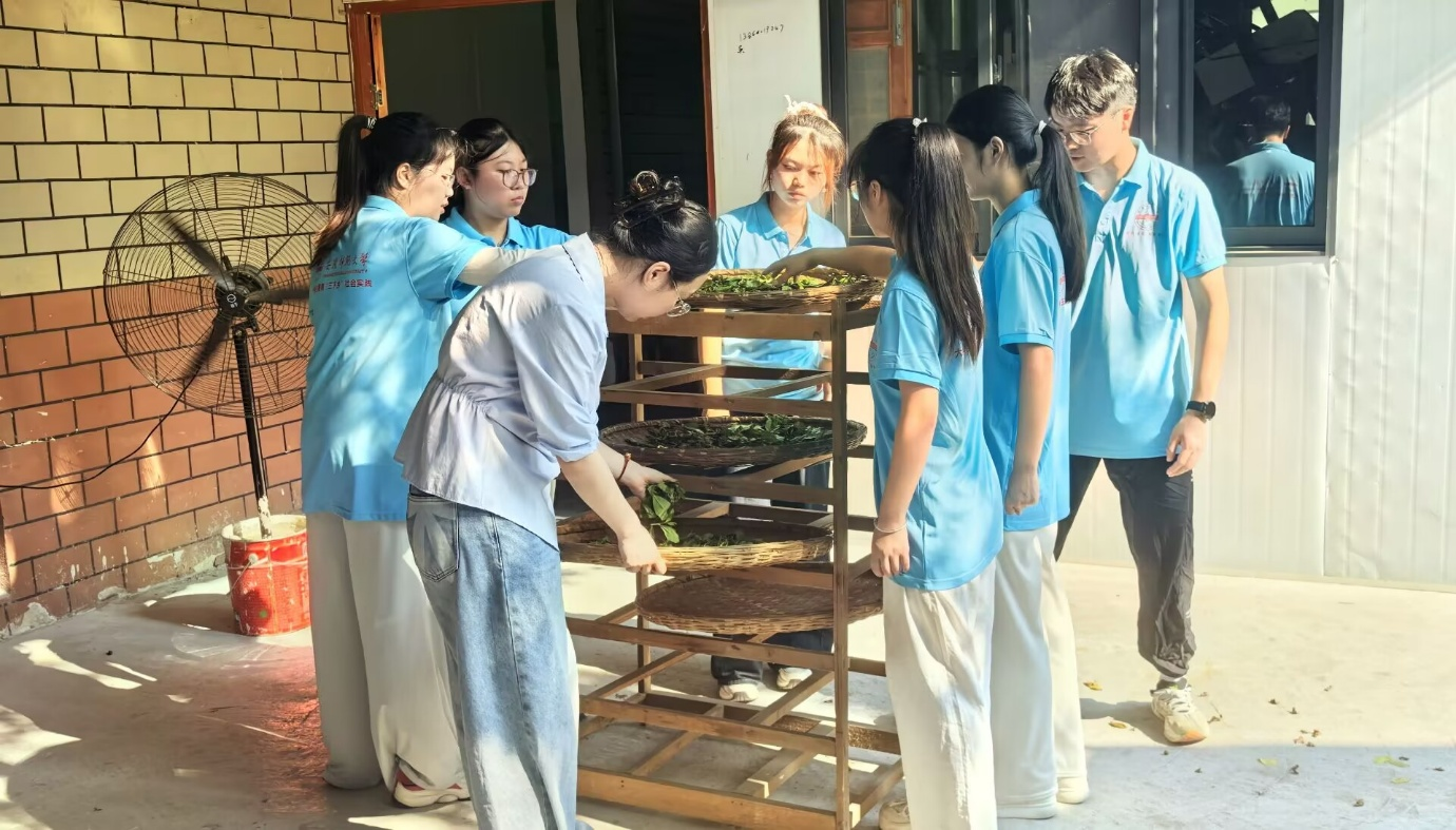 2025年7月7日至14日,“寻访乡村故里,擘画振兴蓝图”暑期社会实践团在科技小院进行“宜秀红”的制作。团队特意挑选品相上乘的龙山野茶,为龙城幼儿园“小小茶艺师”课堂储备“鲜活教材”,确保每片茶叶都成为孩子们触摸传统、品味科学的最好媒介。