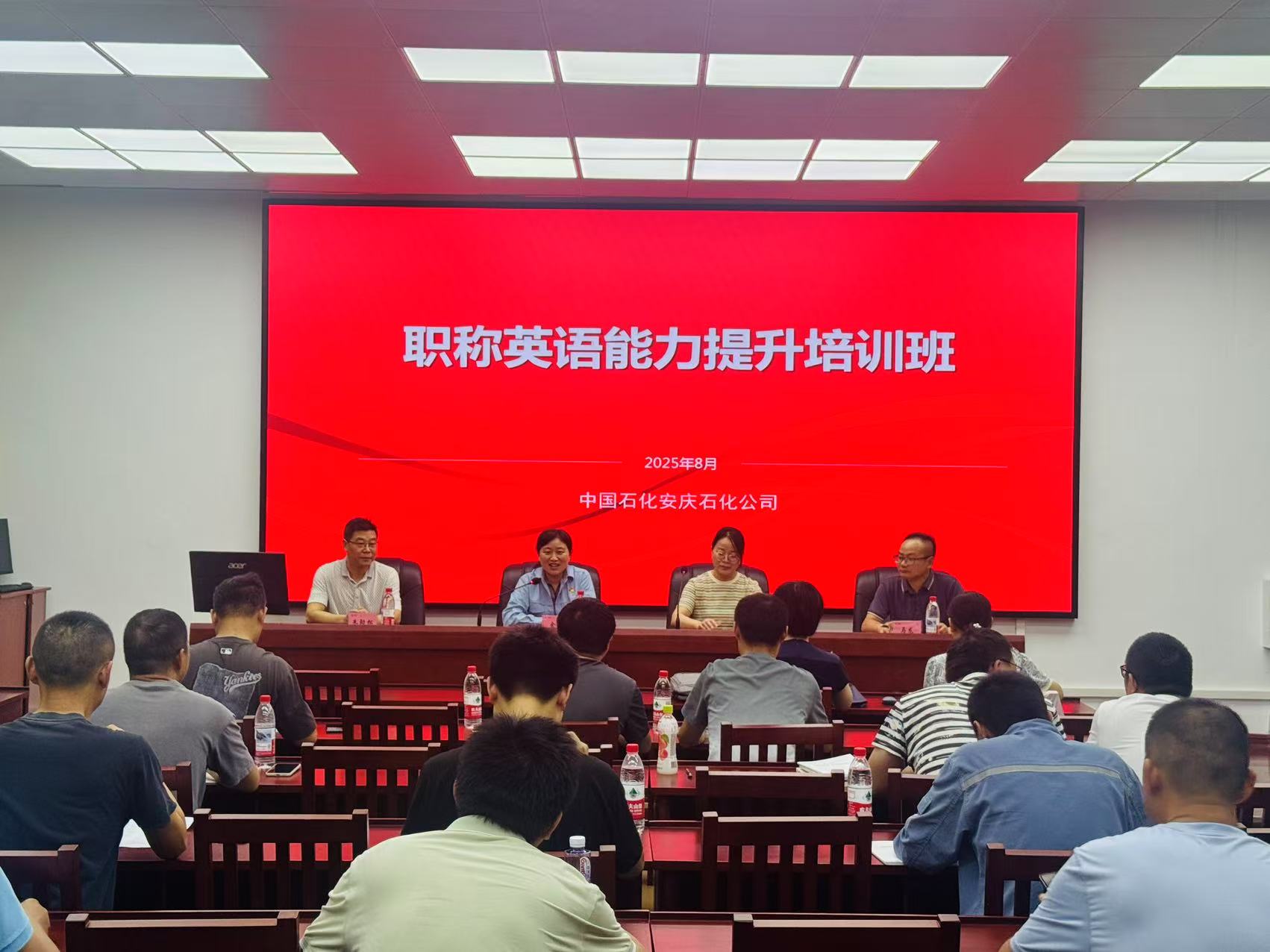 8月9日下午,外国语学院与中国石化安庆分公司联合举办的首届员工职称英语能力提升培训班,在石化培训中心举行开班典礼。中国石化安庆分公司党委组织部副部长余婷、人力资源专家朱劲松出席仪式,外国语学院副院长瞿宁霞携教学团队,以及30余名参训学员参加仪式。仪式由余婷主持。