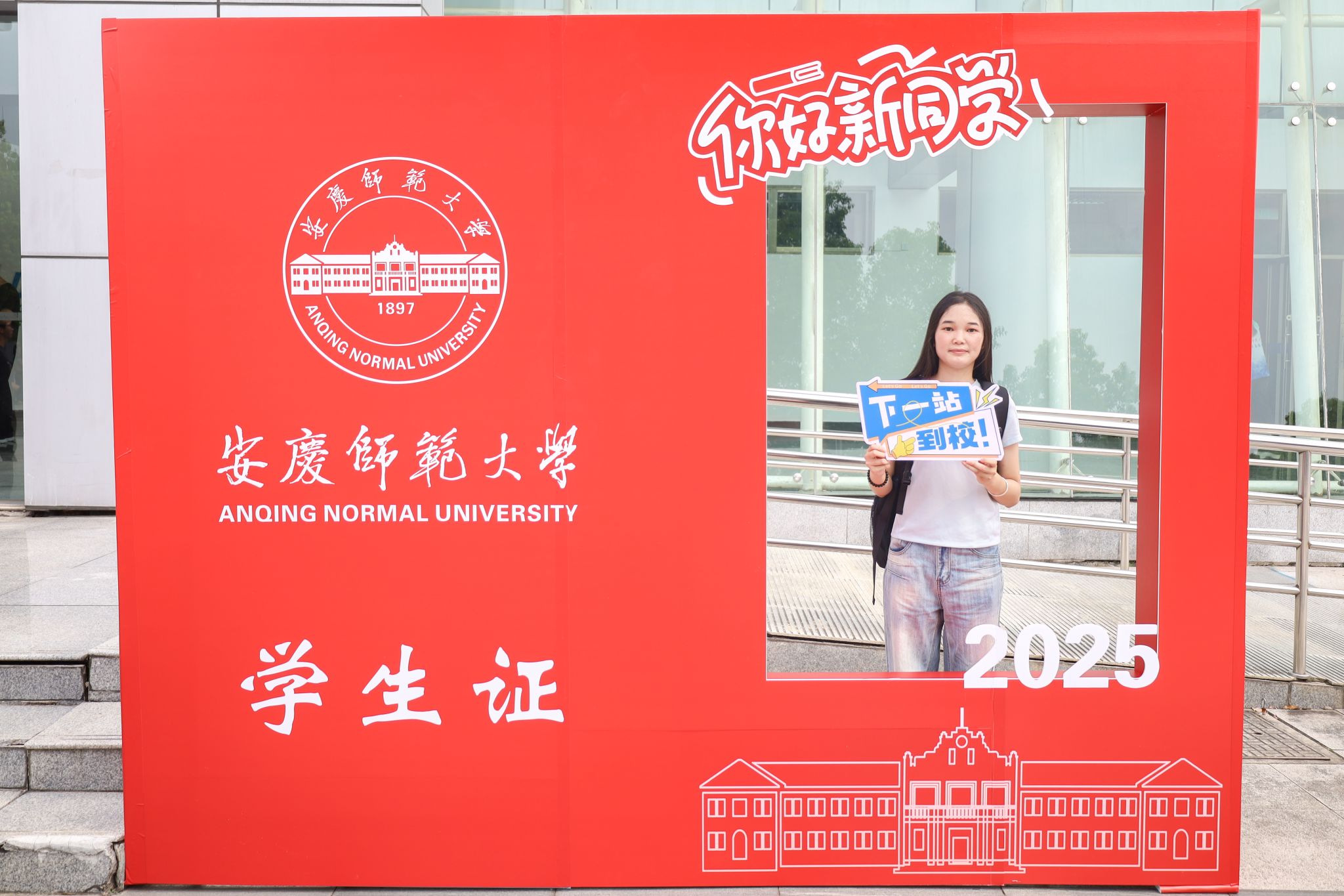 “在报到前一周,对接志愿者学姐就加了我的微信,给我发了学校的校园地图,让我对陌生的环境少了很多顾虑。”来自广西的瑶族新生、生物科学类专业2025(4)班的卢丽,在完成报到后在体育馆门前的打卡牌前拍照留念,记录开学第一天。