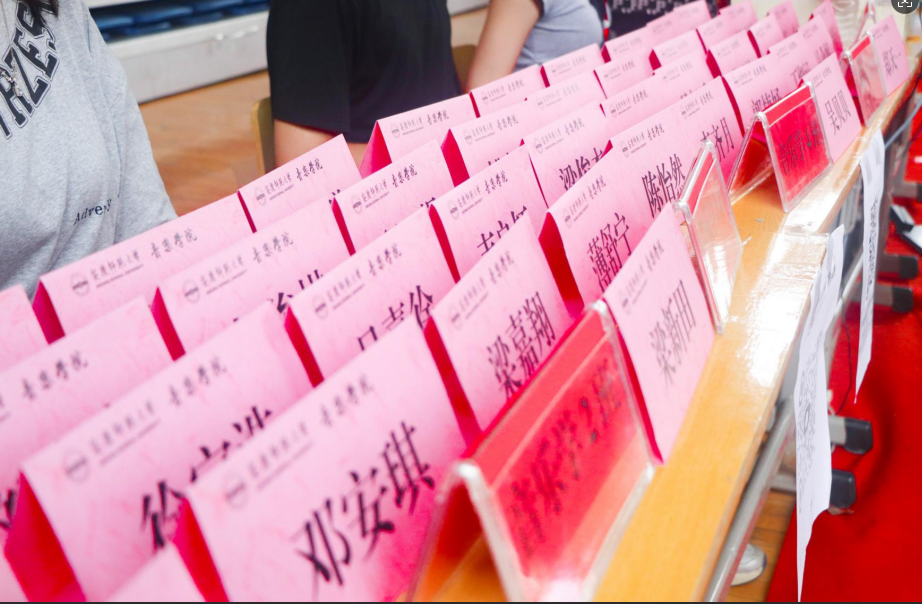 9月7日,在音乐学院迎新报到点,121枚为2025级本硕新生专属设计的姓名牌整齐排列,静待领取。每一枚姓名牌不仅是新生身份的象征,更成为学院暖心迎新仪式中的核心载体,承载着认同、关怀与融入的多重寓意。