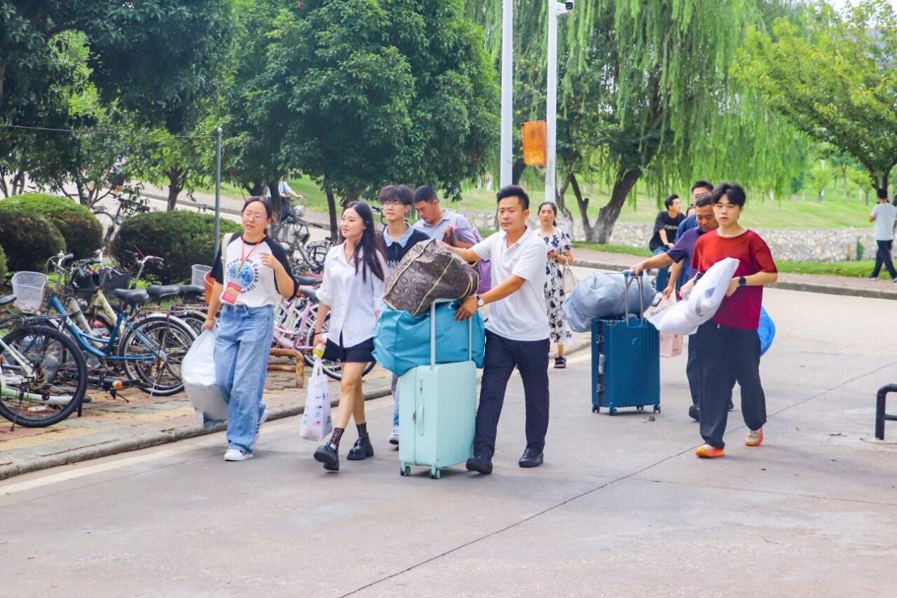 9月6日清晨,2025级的研究生们已陆续抵达校园。师兄师姐们笑容满满,提供精准校园路线指引与行李搬运服务,并贴心准备了校园特色折扇、帆布袋等实用物资,让新同学们感受到家一般的温暖,用行动点亮“共启”之路。