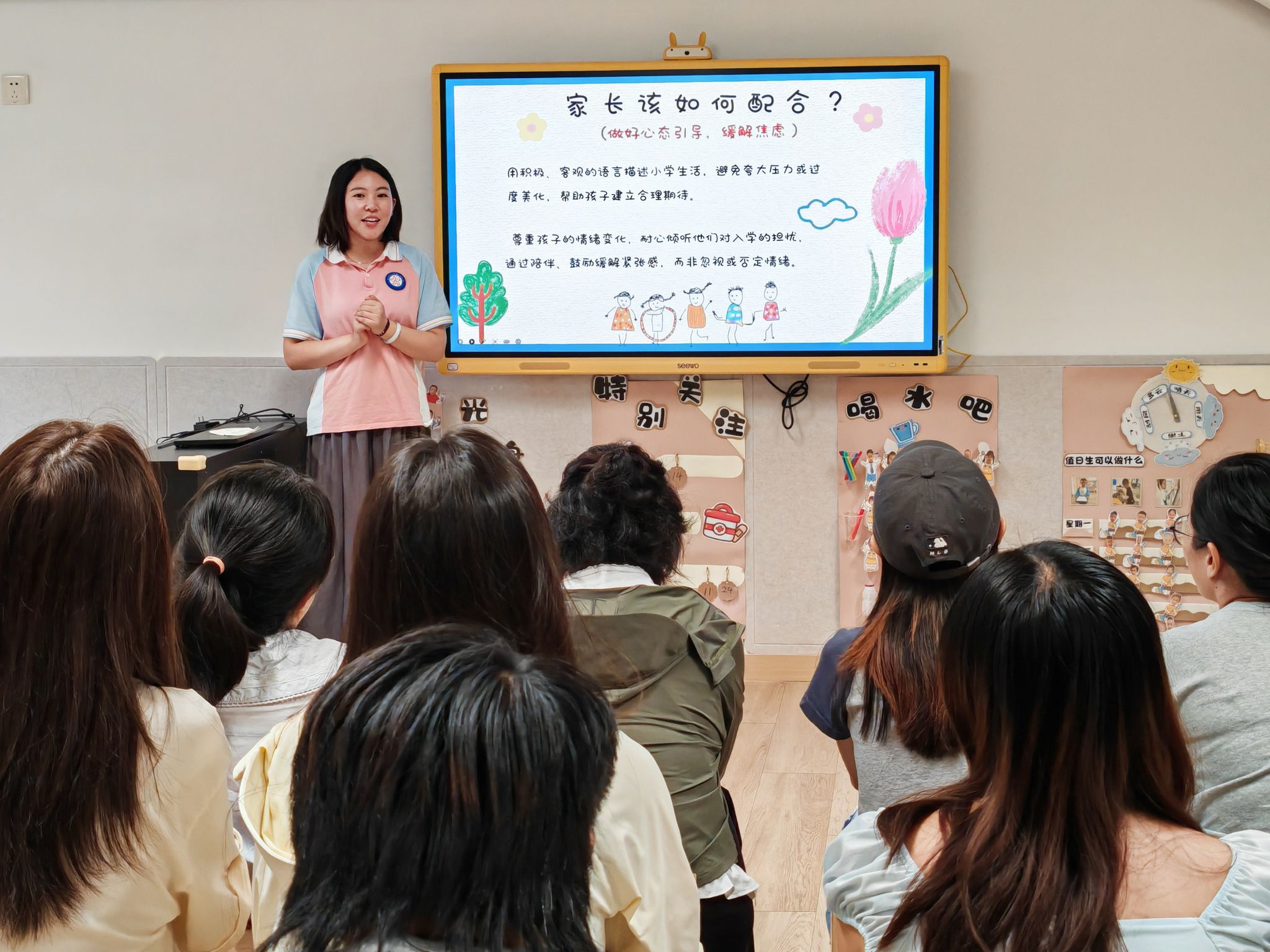 党支部书记、园长姚萍以《让成长在守护中自然发光》为主题,与新生家长围绕“如何培养面向未来的儿童”展开交流。她从幼儿园教育实践与家园共育两方面出发,结合当前教育发展趋势,强调关注儿童全面发展,重视实践操作与创新思维培养,并系统介绍了幼儿园整体情况、师资力量以及以“起舒”文化为特色的生活、科学、运动课程体系。