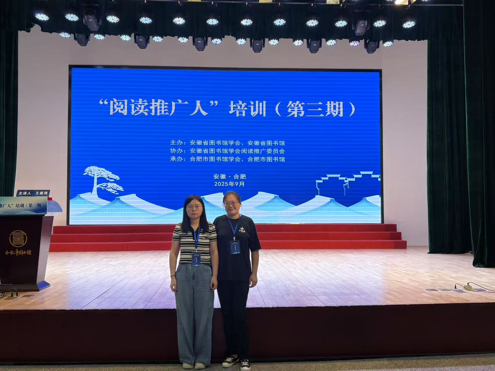 9月22日至9月25日,由安徽省图书馆学会与安徽省图书馆联合主办的“阅读推广人培训(第三期)”在合肥顺利举办。beat365图书馆选派张成林、戴静两位老师参加培训,进一步提升专业素养与服务能力。