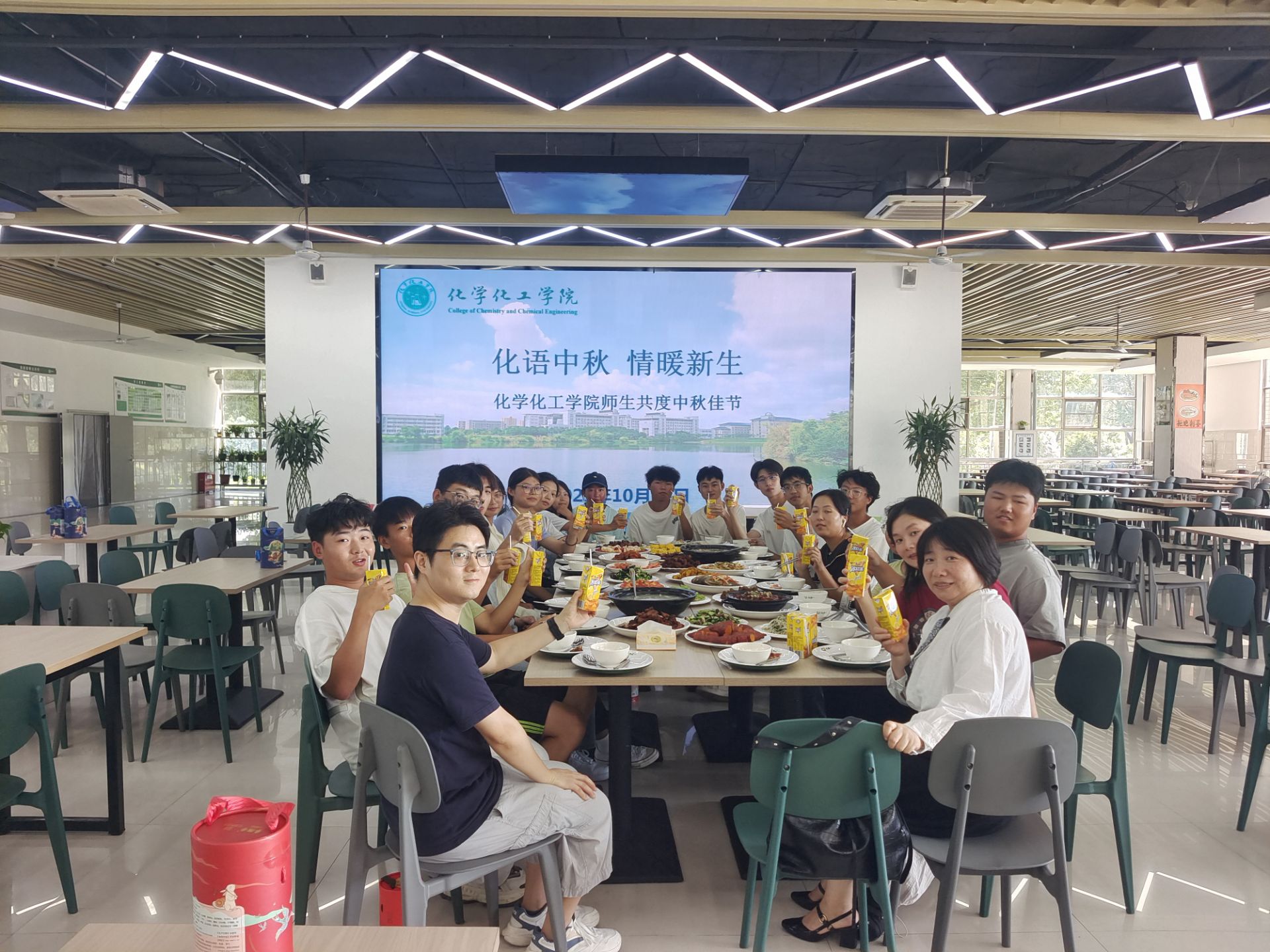 10月6日,化学化工学院在西苑食堂举办“化语中秋,情暖新生”师生共度中秋佳节活动。学院党委负责人、新生辅导员与2025级留校新生齐聚一堂,共品美味佳肴,共话中秋情思,在欢声笑语中度过了一段温馨难忘的时光。