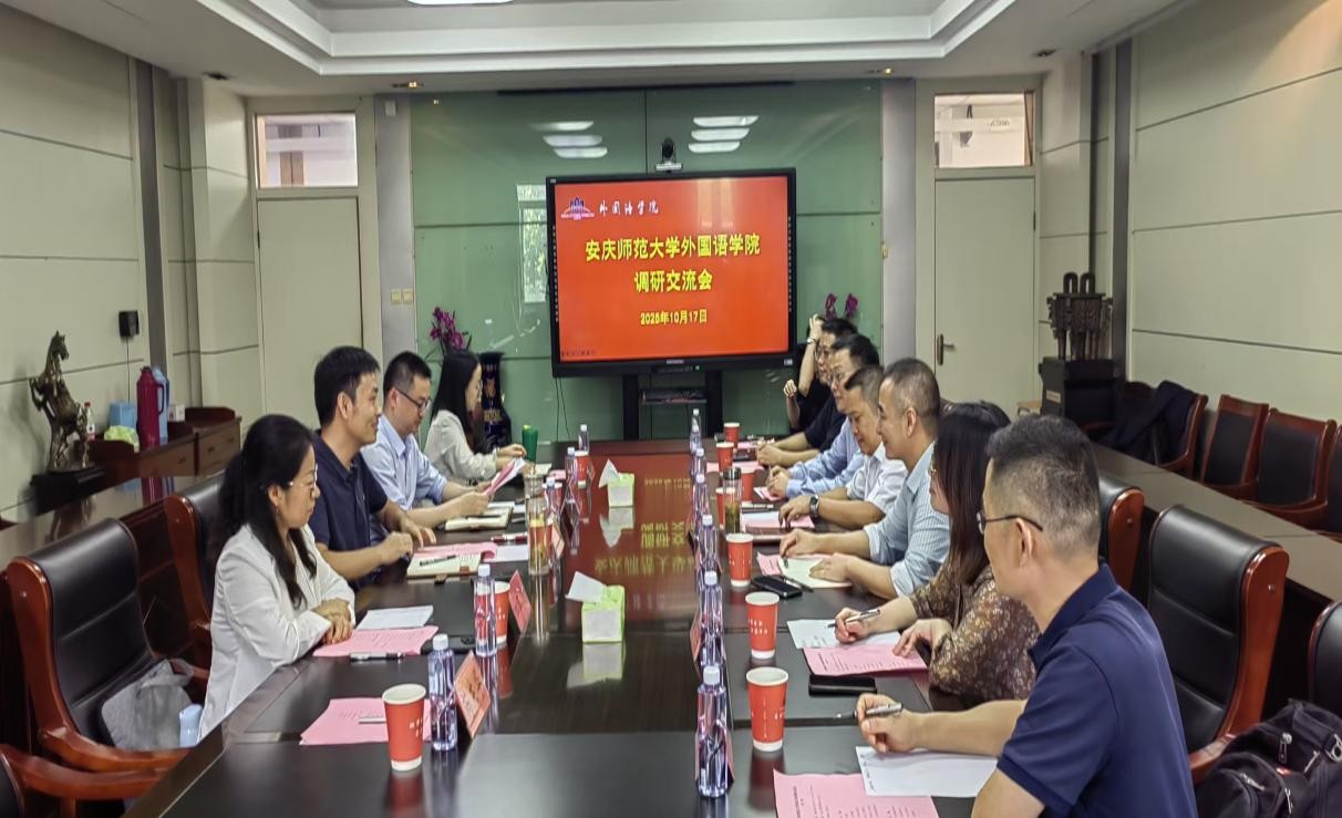 近日,外国语学院党委书记徐华胜、院长江加宏、副院长瞿宁霞、黄全灿以及学院骨干教师一行前往安徽师范大学外国语学院开展专题调研交流。安徽师范大学外国语学院党委书记戴和圣、院长张孝荣、副院长张涛及骨干教师代表热情接待了调研组。